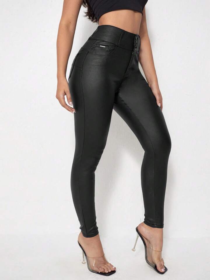 بنطلون نسائي بخصر عالي وجيوب، بفتة جسم بسيطة