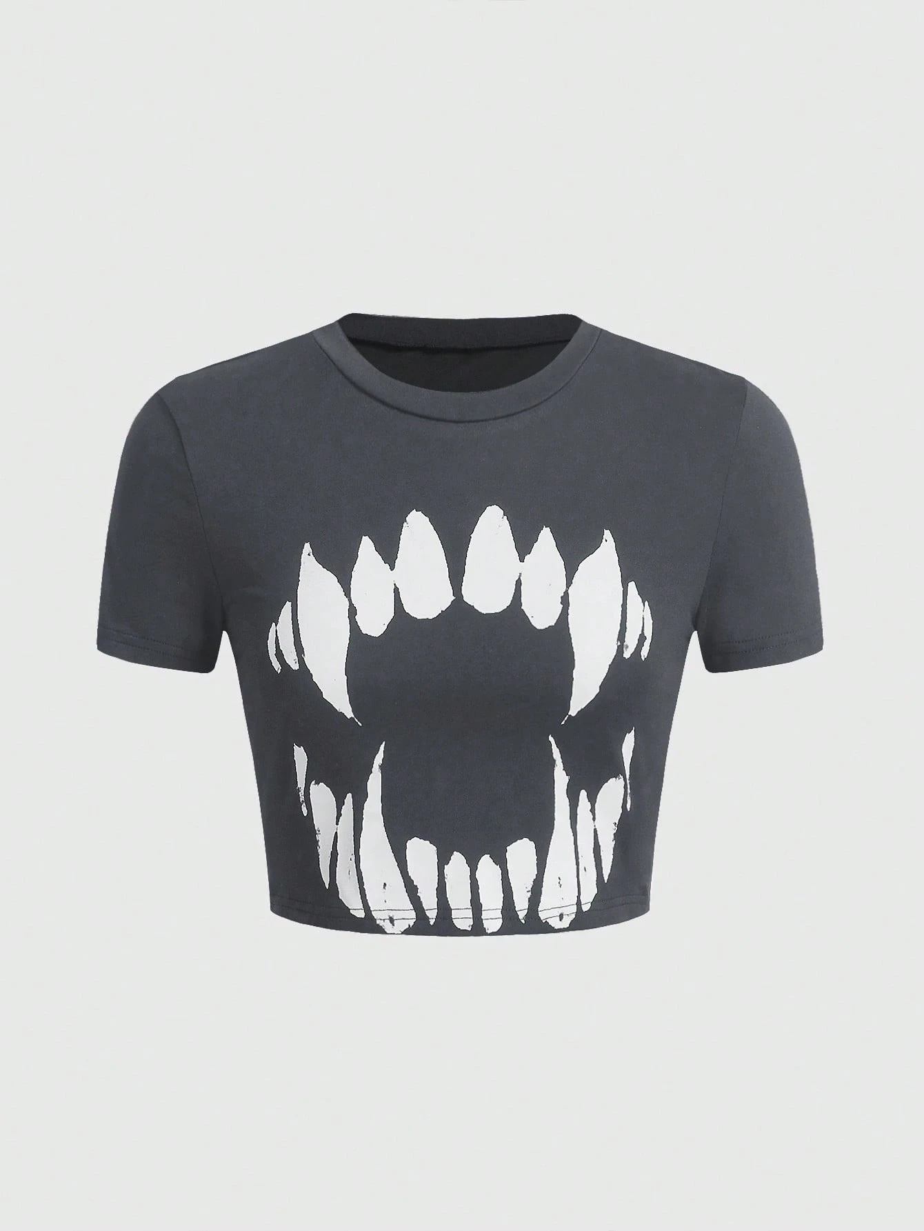 Goth ملابس علوية محصور نسائي طباعة أنياب غوثي للصيف