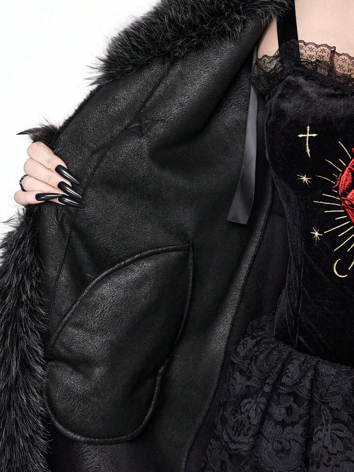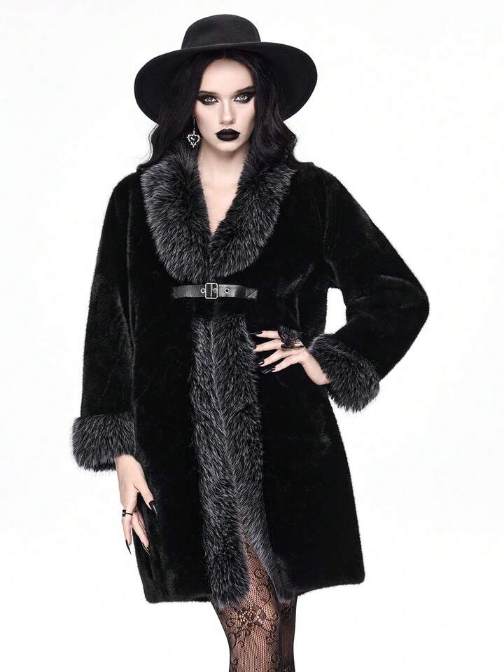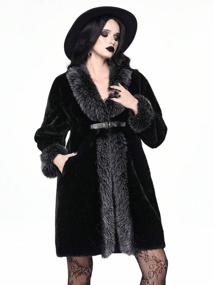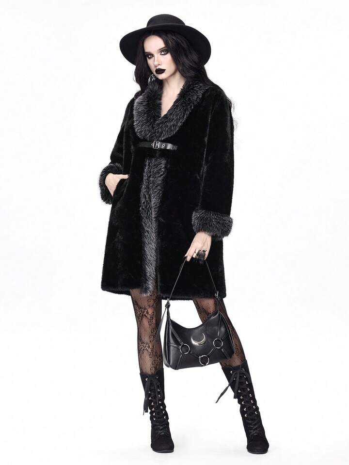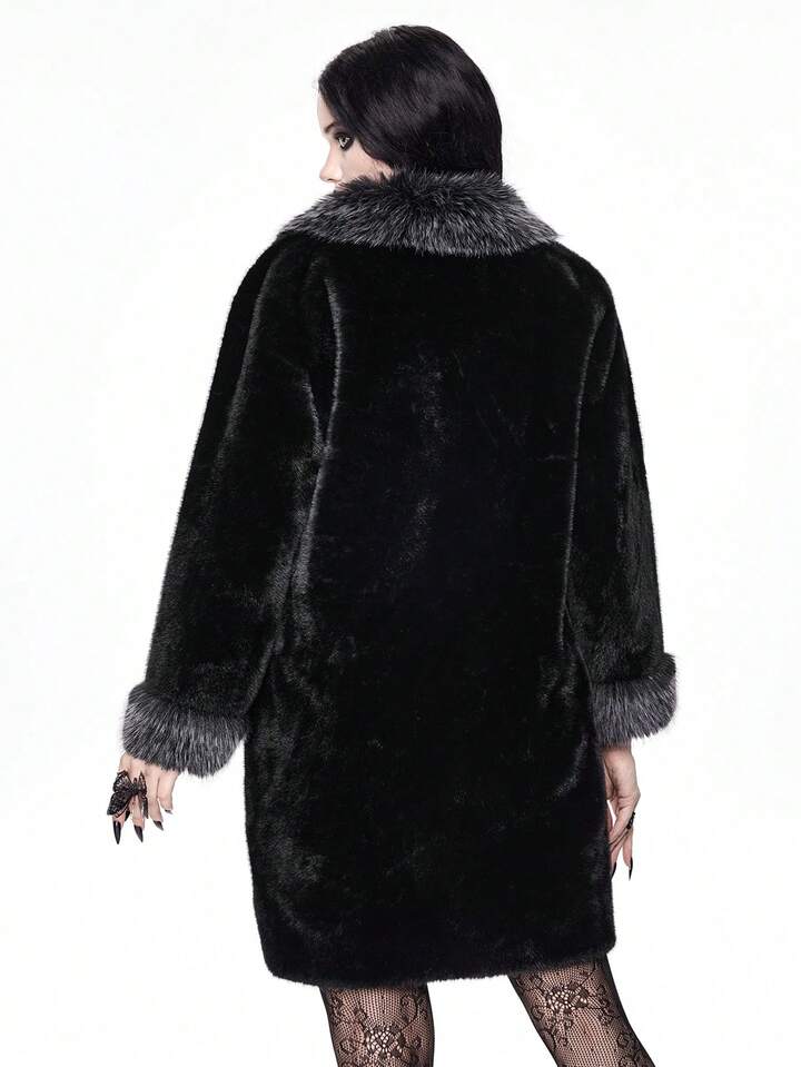 معطف نسائي طويل الأكمام بتصميم أزرار وفرو اصطناعي موضة الخريف/الشتاء