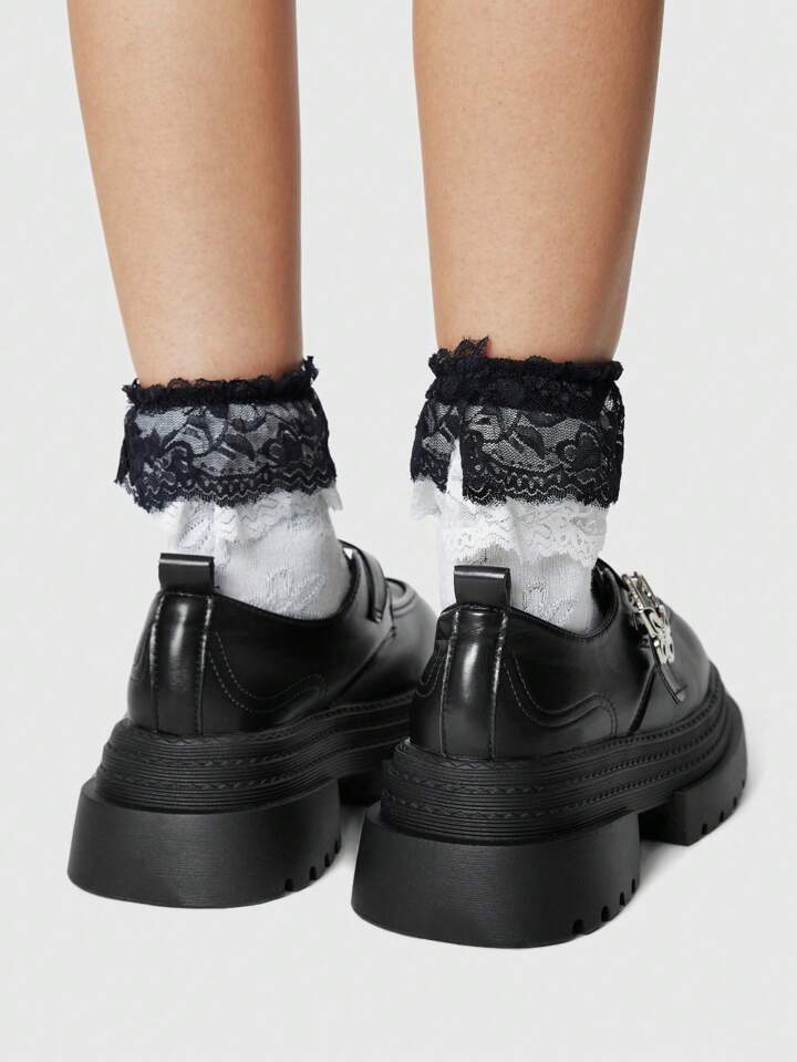 Goth أحذية ماري جين بنقشة فراشة، بنمط بانك روك جوثية ل- السيدات، أخشاب عريضة ومنصة وكعب سميك