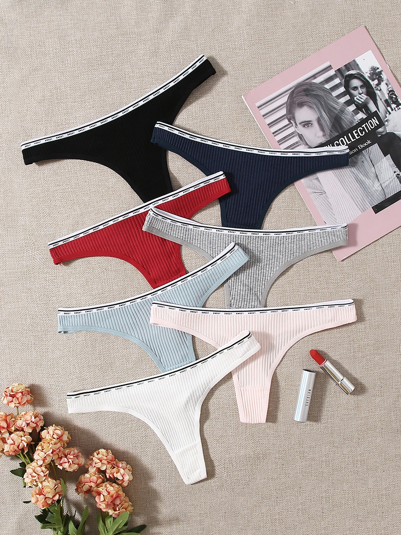 طقم سروال داخلي رفيع ومضلع 7 قطع