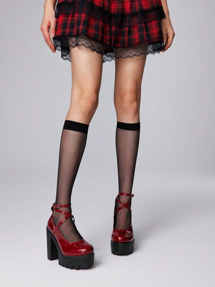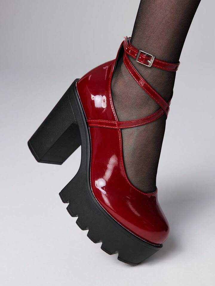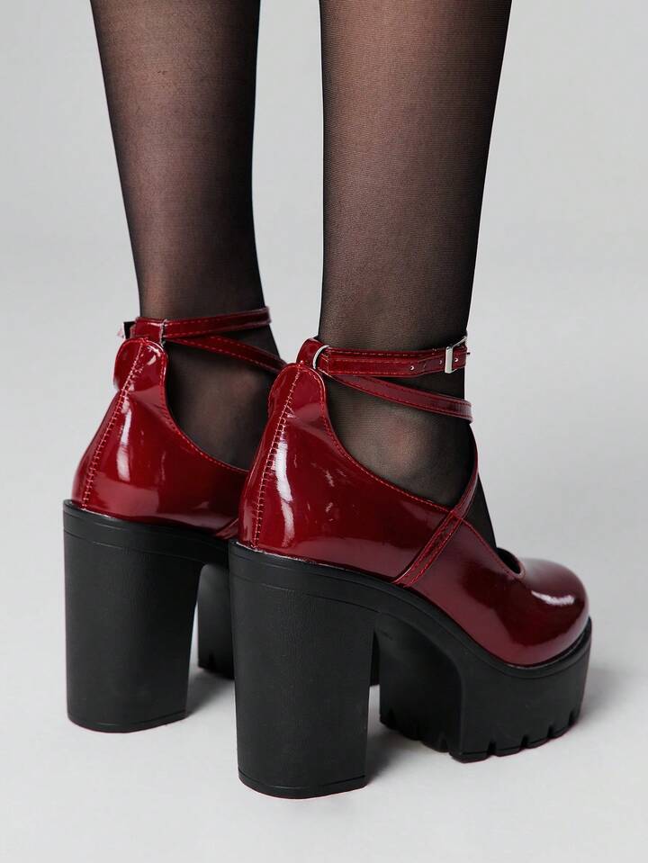 Goth أحذية ماري جين للنساء ذات الأصابع المغلقة والحزام المتقاطع، أحذية رسمية بكعب سميك وكعب منصة بطراز بانك جوث