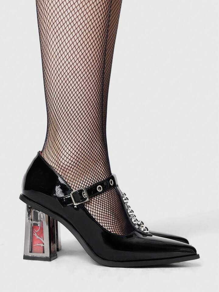 Goth أحذية كعب عالي مغلقة أمام بتصميم وردة للنساء ، أحذية ماري جين بطراز جوثي پانك روك من الجلد مع إبزيم معدني ، حذاء كعب فستان منصة مقاومة للماء