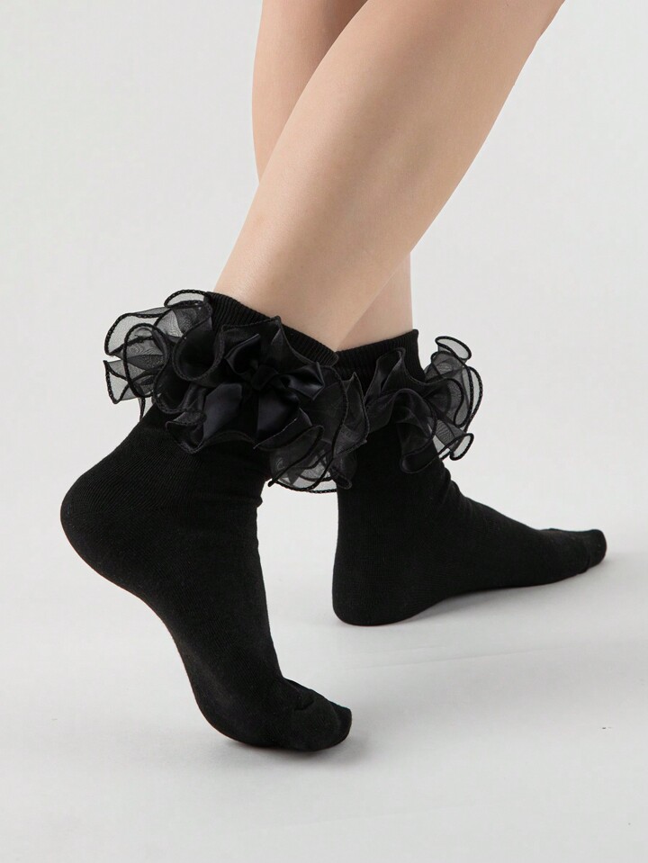 جوارب نسائية متوسطة الساق بتريم كشكشة مع تباين شبكي