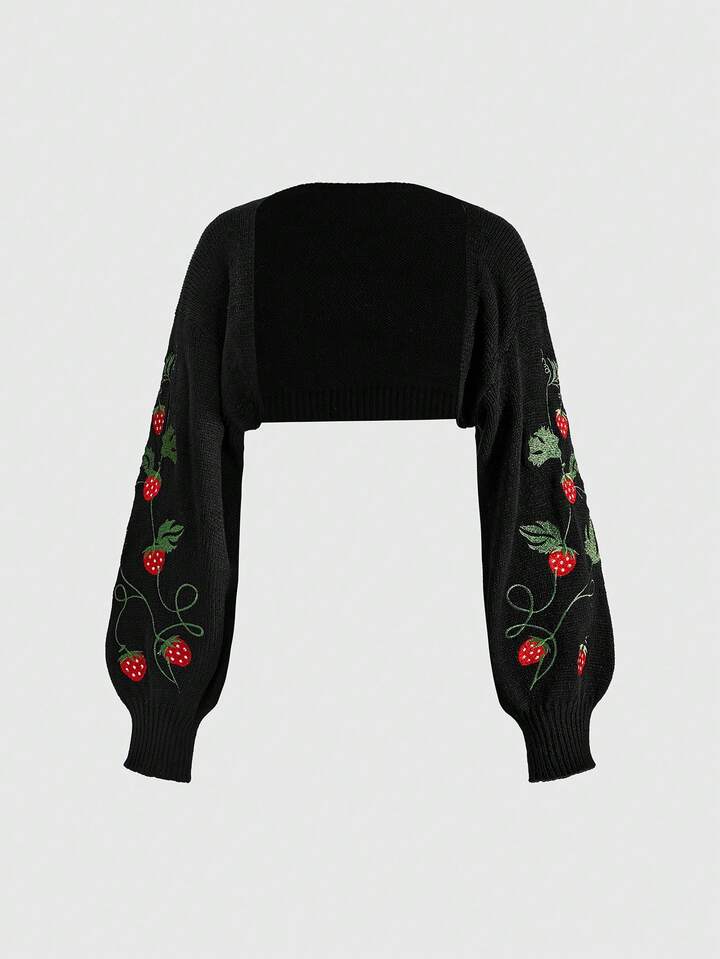 كارديجان مطرز بنمط كرمة الفراولة للنساء