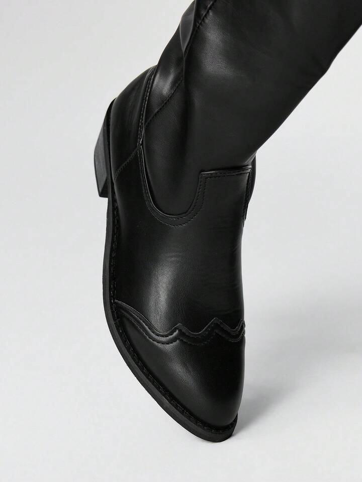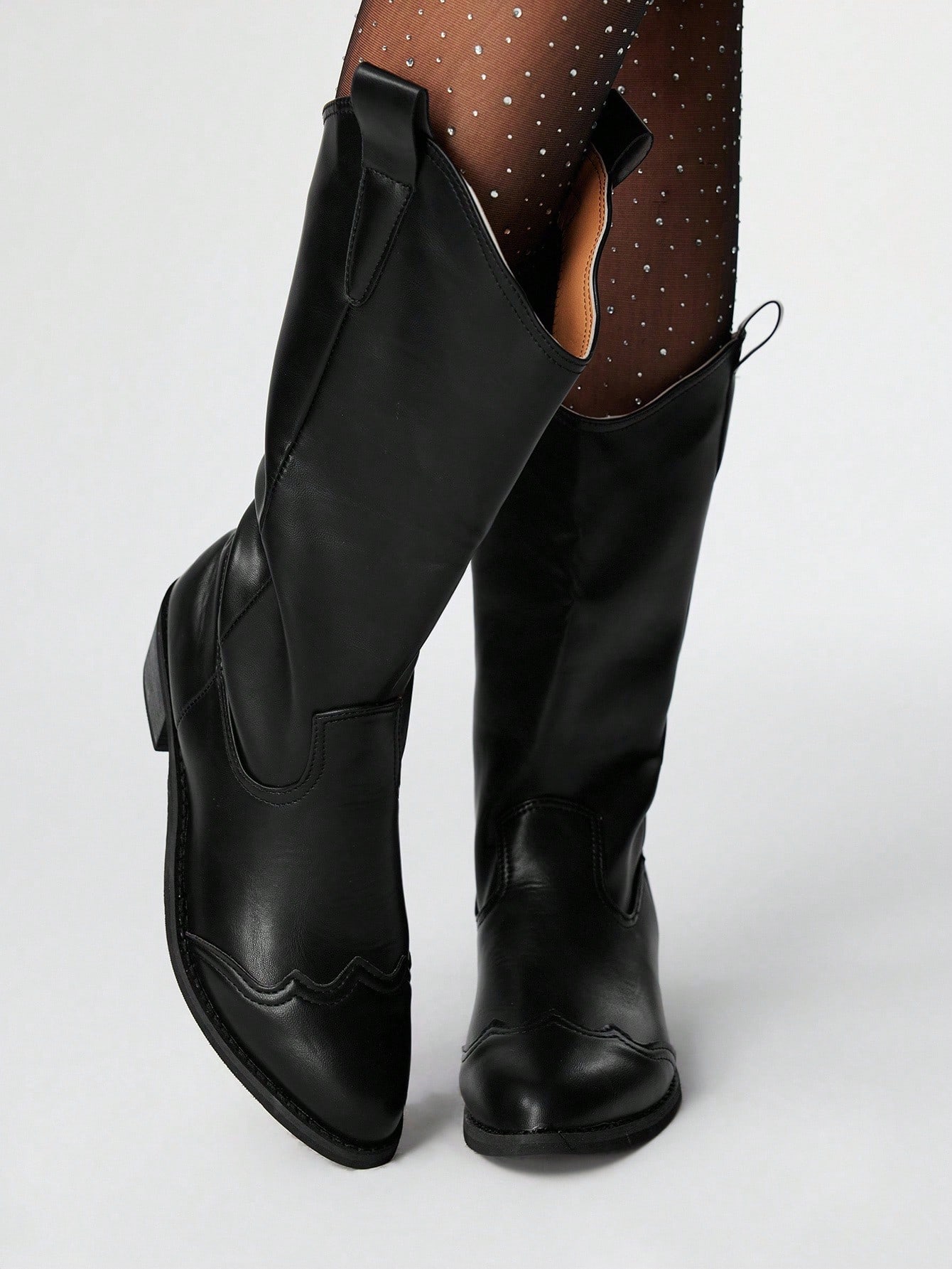 Goth بوت نسائية بطراز بانك داكن وجوتيك، بوت غربية طويلة مطرزة باللون الأسود ذات كعب منخفض، بوت كاحل من الجلد وأحذية قصيرة