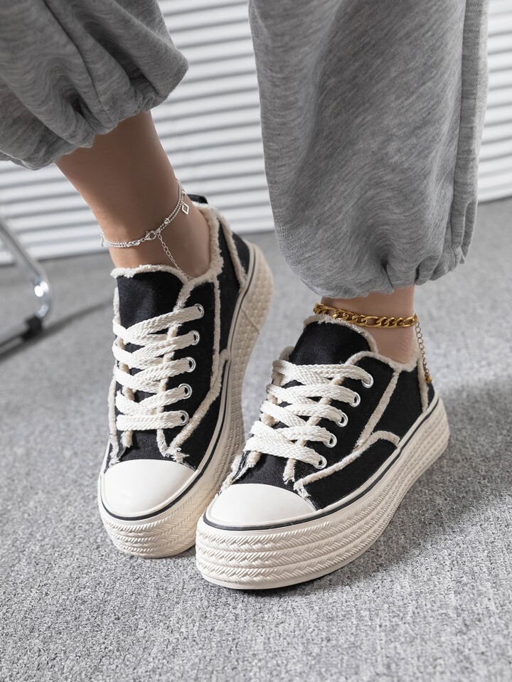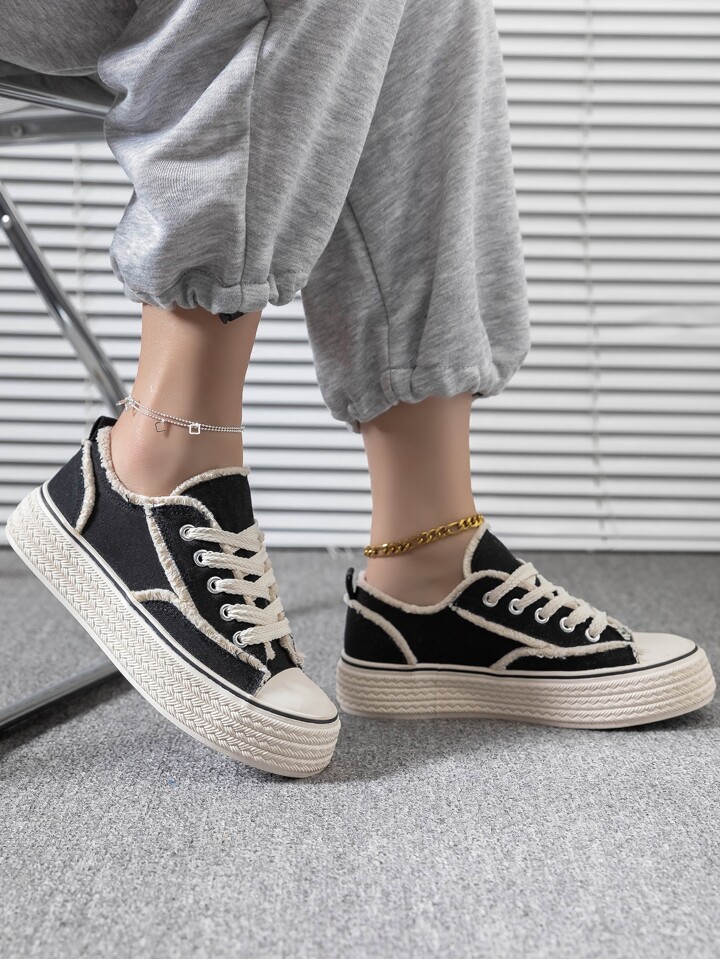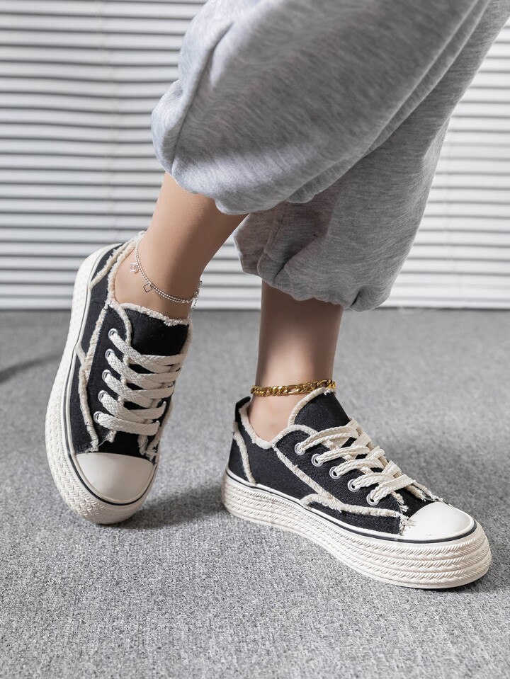أحذية نسائية كاجوال خفيفة للخروج للمشي في الهواء الطلق مع رباط دائري من قماش كانفاس أسود غير انزلاقية مناسبة للربيع والصيف