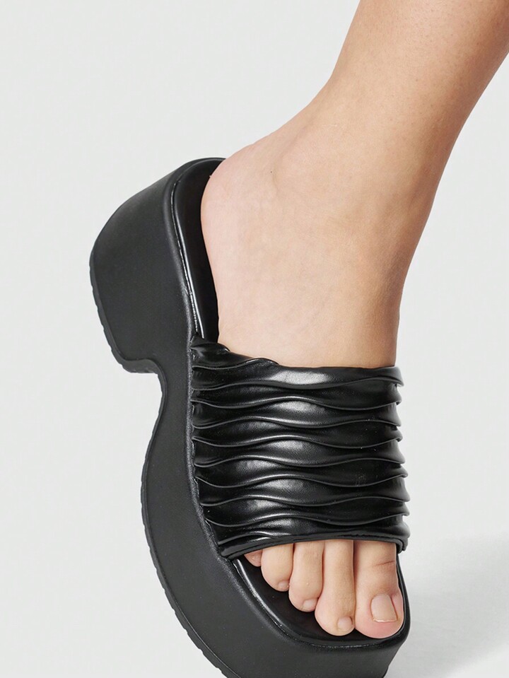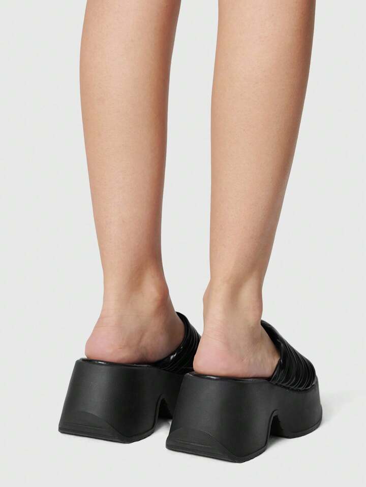 Goth صنادل نسائية كلاسيكية بكعب منصة للربيع والصيف، صنادل شبشب برقبة مفتوحة للقدم، أحذية شاطئية سهلة الارتداء