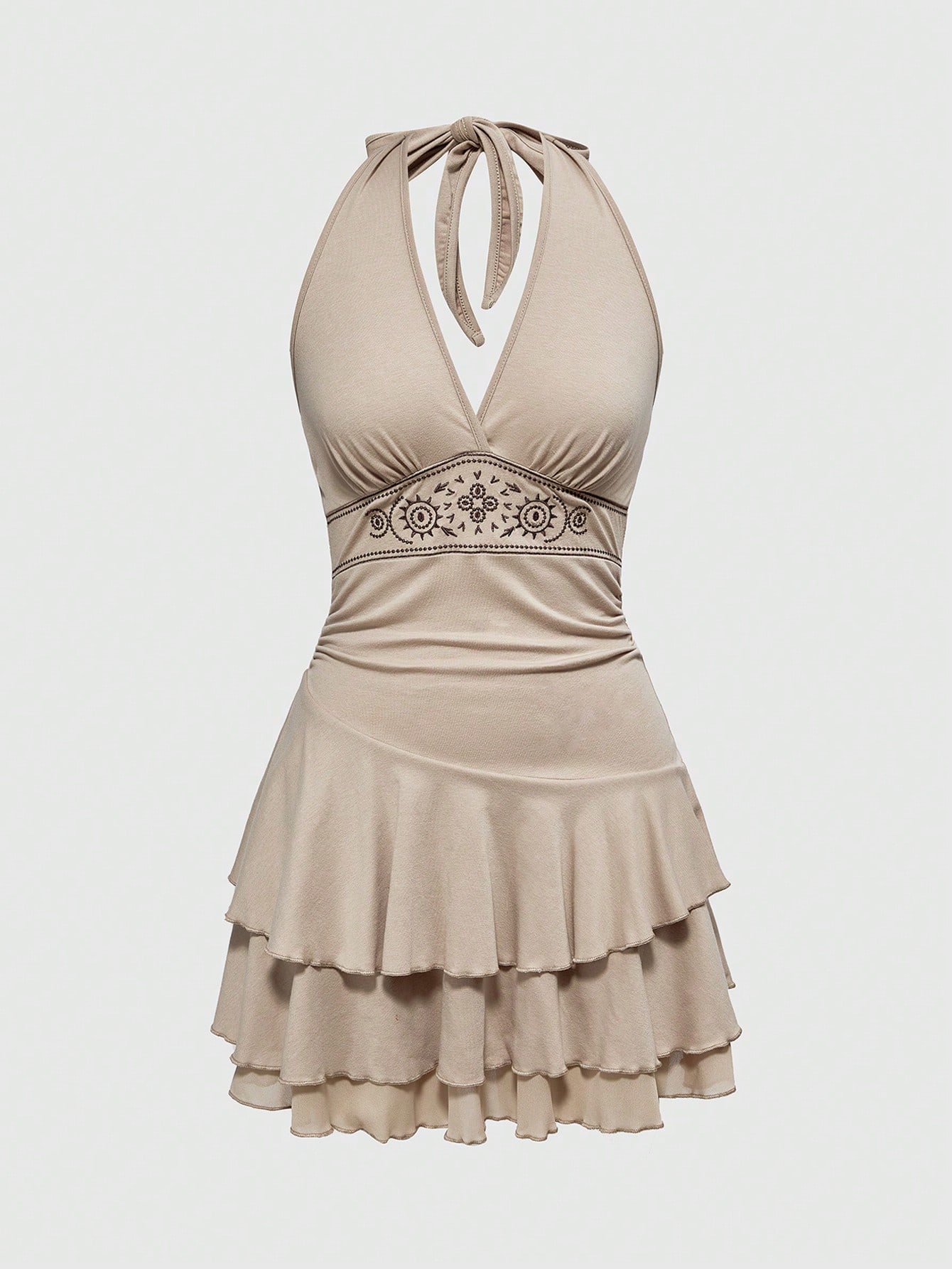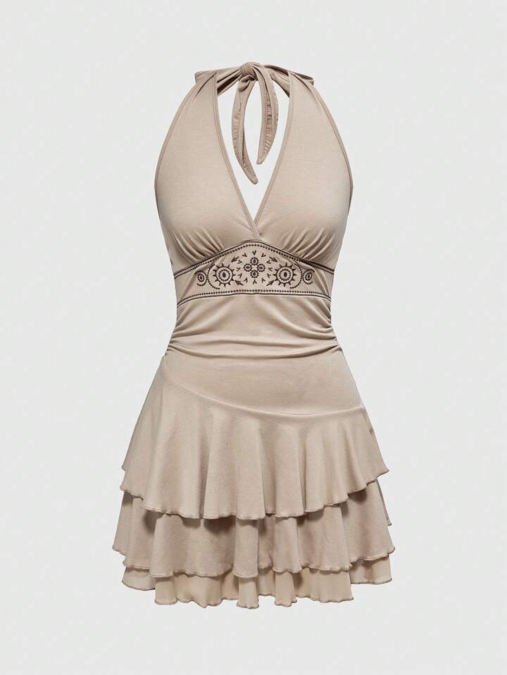 Hippie فستان حريمي قصير بخصر واسع بنقشة نسيجية بزخارف الشمس والطوطم بطبقات متراكبة على الهيبي