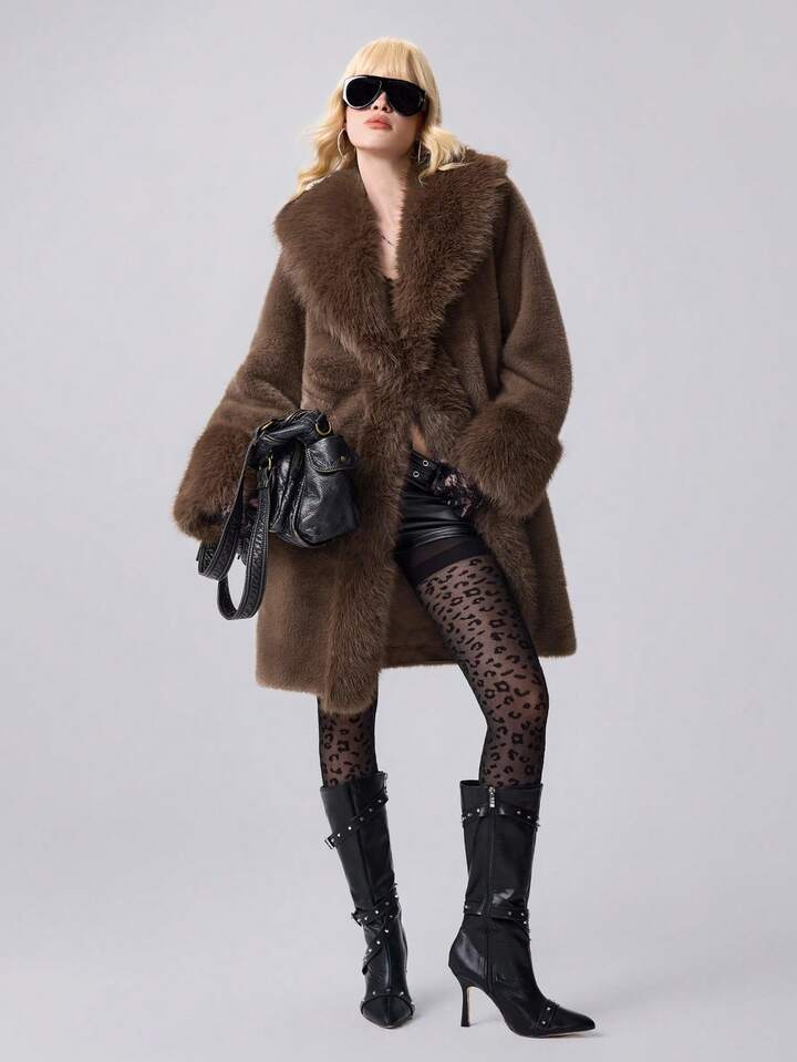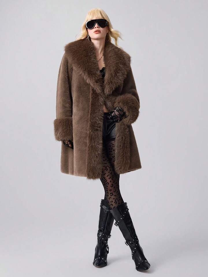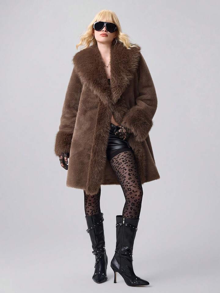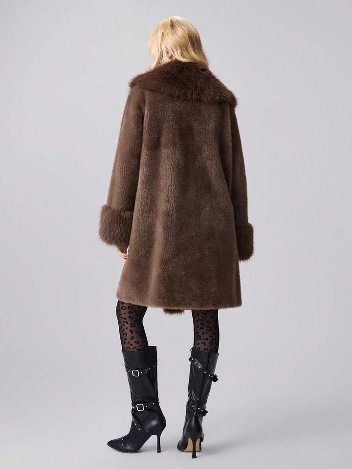 معطف فرو اصطناعي كلاسيكي للنساء، موضة الخريف/الشتاء