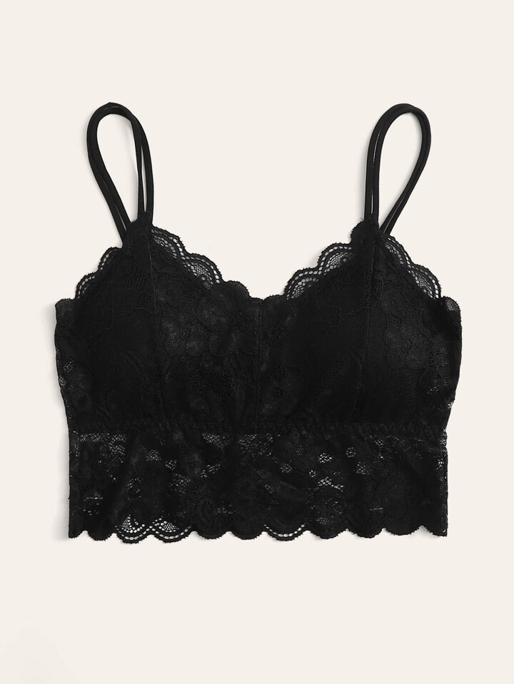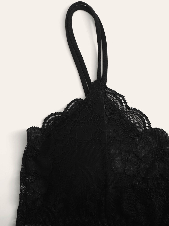 حمالة صدر رومانسية من الدانتيل الأسود الفرنسي مع نسيج مرن متوسط