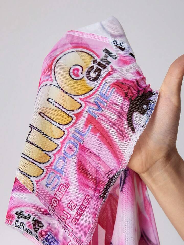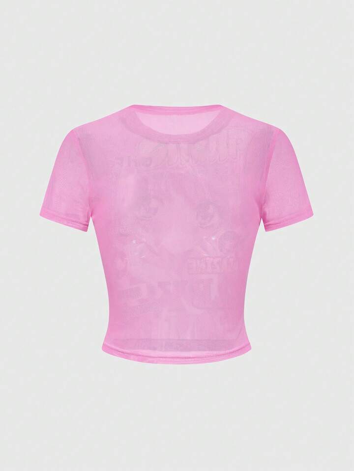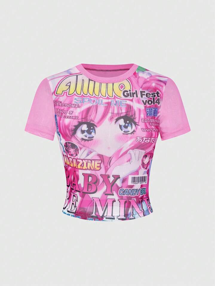 Anime ملابس علوية نسائية قصيرة الأكمام ضيقة القصة ذات ملمس شفاف مطبوعة برسوم إنمي مثيرة
