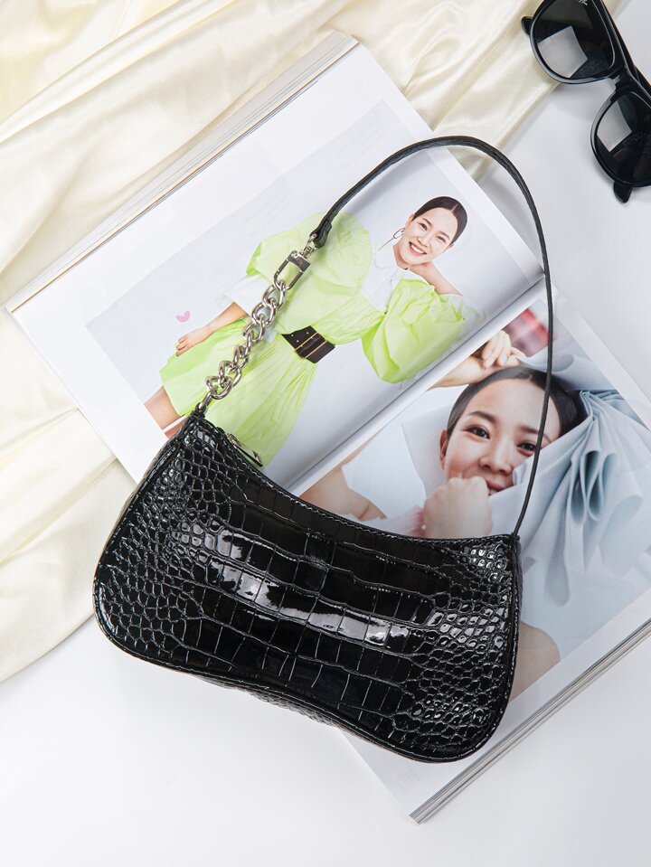 حقيبة يد سهلة الحمل نسائية طراز باقيت بافة مزخرفة بوجه تمساح، موضة الكتف السفلي كافية لجميع الإطلالات، مقاومة للماء وخفيفة ، حقيبة باكيت مزخرفة بوجه تمساح تناسب الفتيات المراهقات وطالبات الكلية الناشئات والعاملات البيضاء اللون وتصلح في العمل، الجامعة، المكتب، الأعمال، التنقل