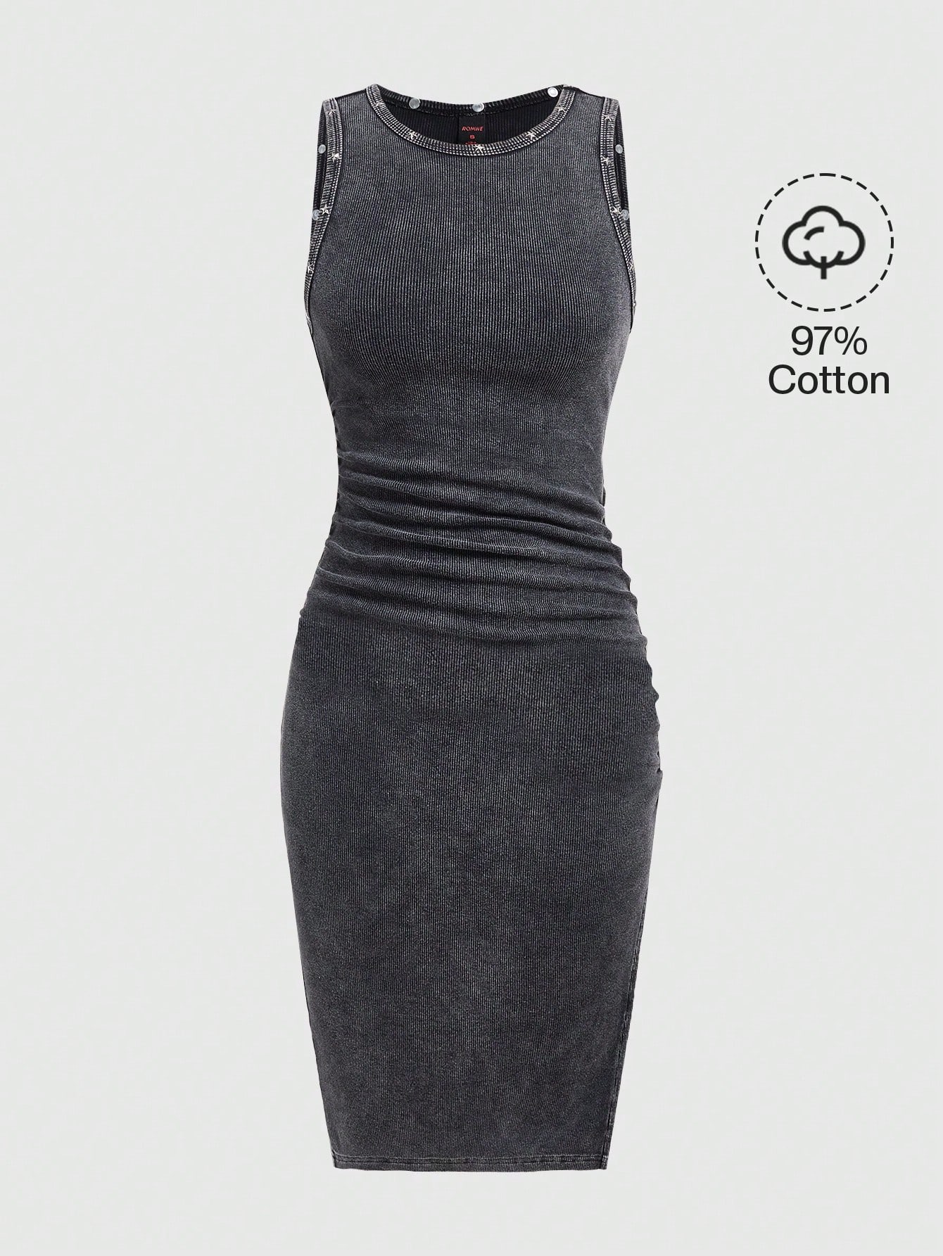 فستان نسائي بدون أكمام مع زخرفة الت قفل , المدرسة