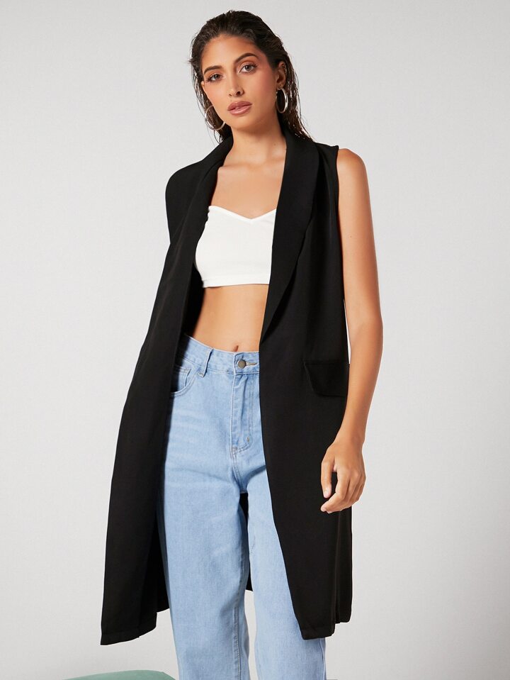 ملابس علوية نسائية بلون واحد بأزرار أمامية بدون أكمام، ملابس علوية أساسية بسيطة للارتداء اليومي، للتنقل الحضري، الموضة البسيطة، ملابس عمل كاجوال في فصل الخريف/الشتاء