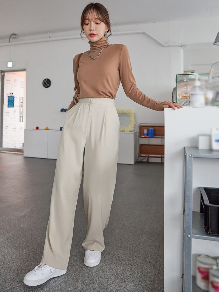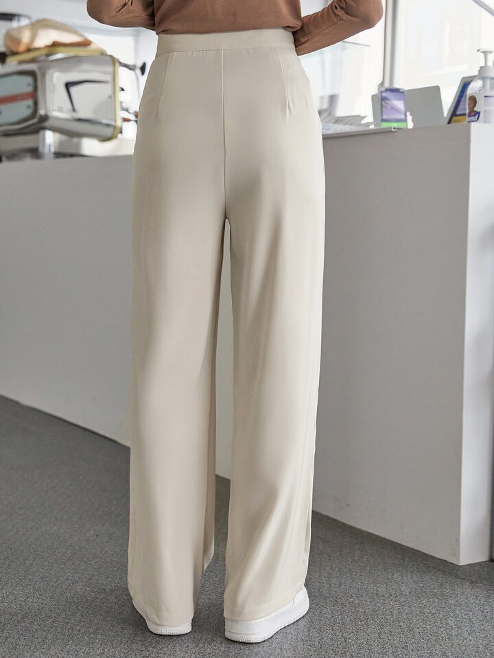 بنطلون نسائي ذو لون أحادي مُستقيم الساق، كاجوال مع جيوب، بنطلون نسائي رسمي