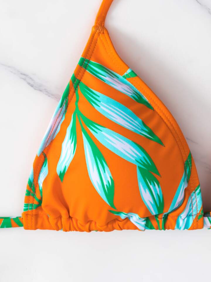 مجموعة بكيني نسائية مكونة من 3 قطع مع غطاء وشورت، طبعة نباتات استوائية صيفية على الحلقة والربط، التصميم المطبوع متنوع
