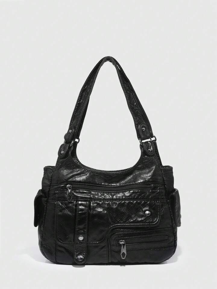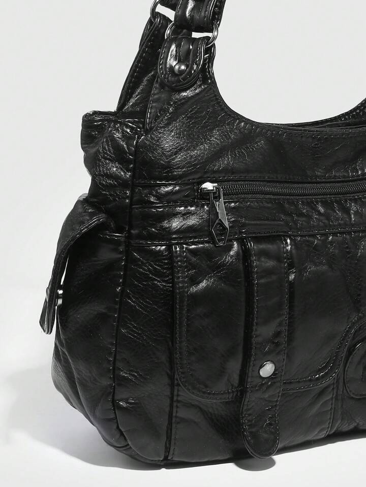 Goth حقيبة كتف حريرية بتصميم انتيك بلمسات جوتية معتقة من الجينز، سعة كبيرة مزودة بجيوب متعددة