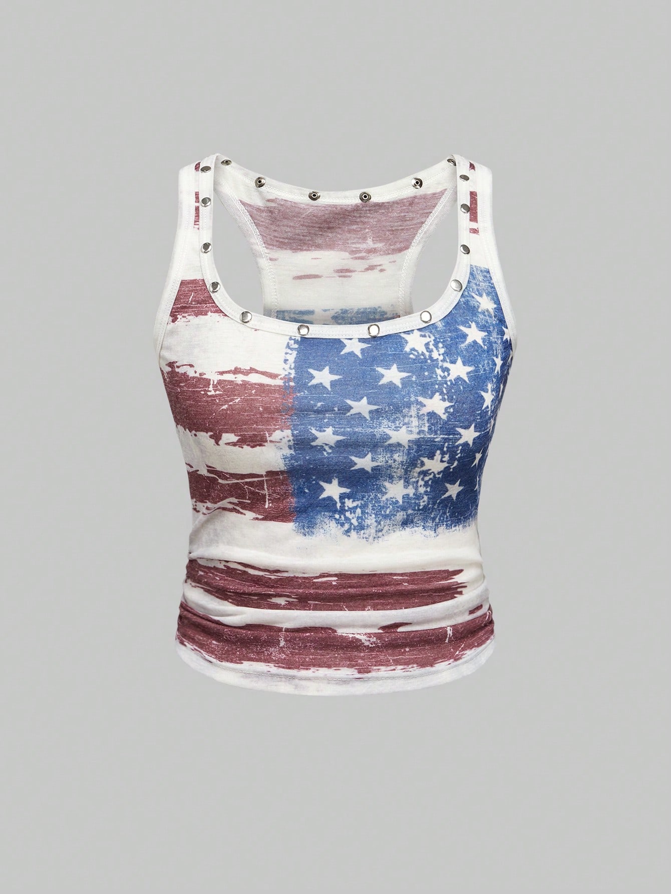خزان سباق مطبوع بطباعة رجعية علم الولايات المتحدة والرمادي لحجم كبير