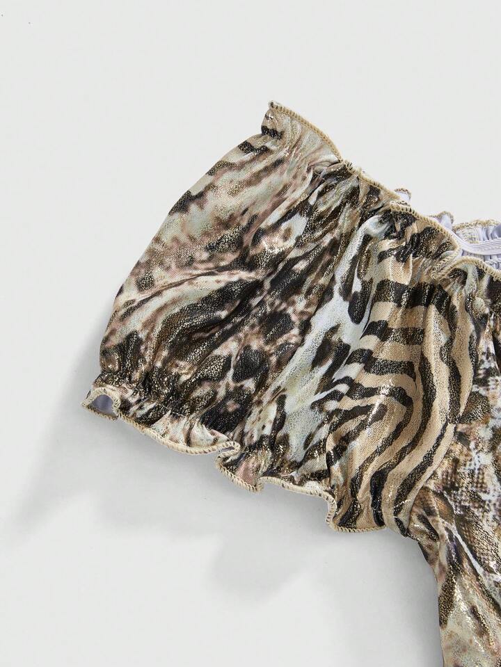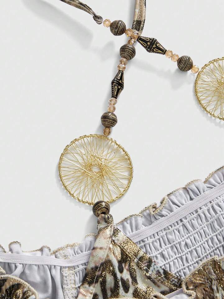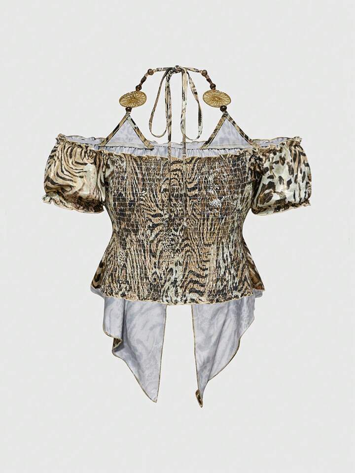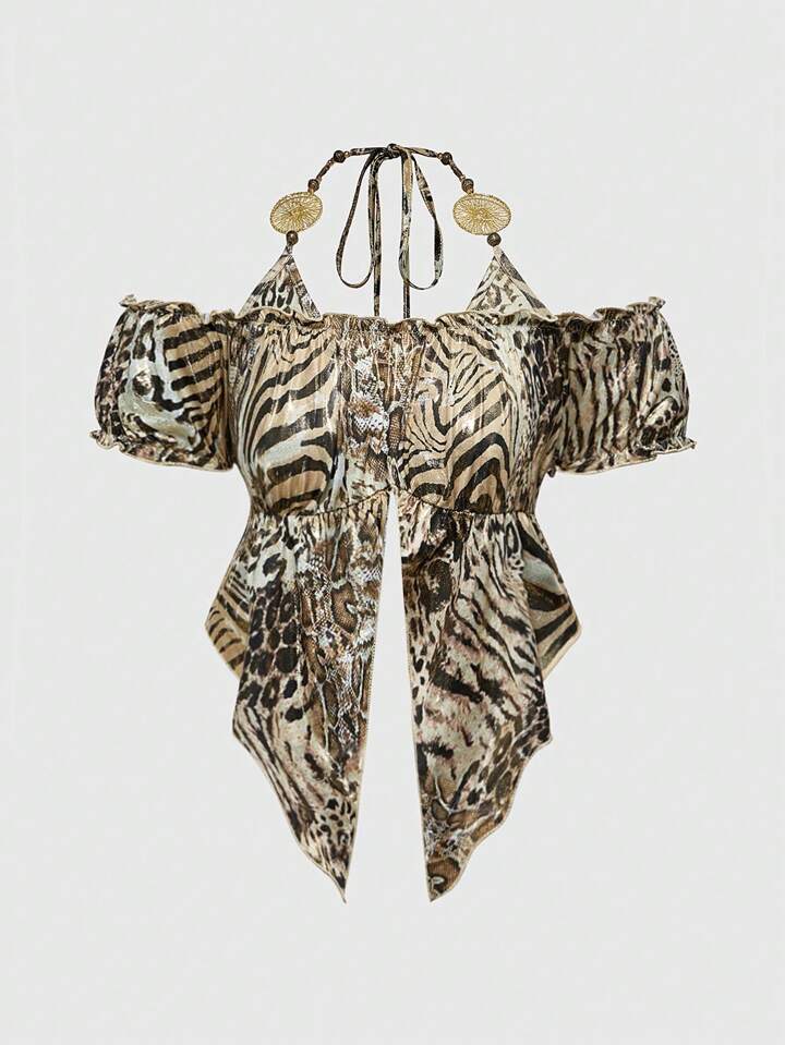 Hippie ملابس علوية نسائية مثلثة الذيل مطبوعة بنمر وبورق ذهبي بطراز هيبي عصر الألفية الجديدة