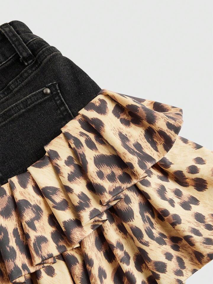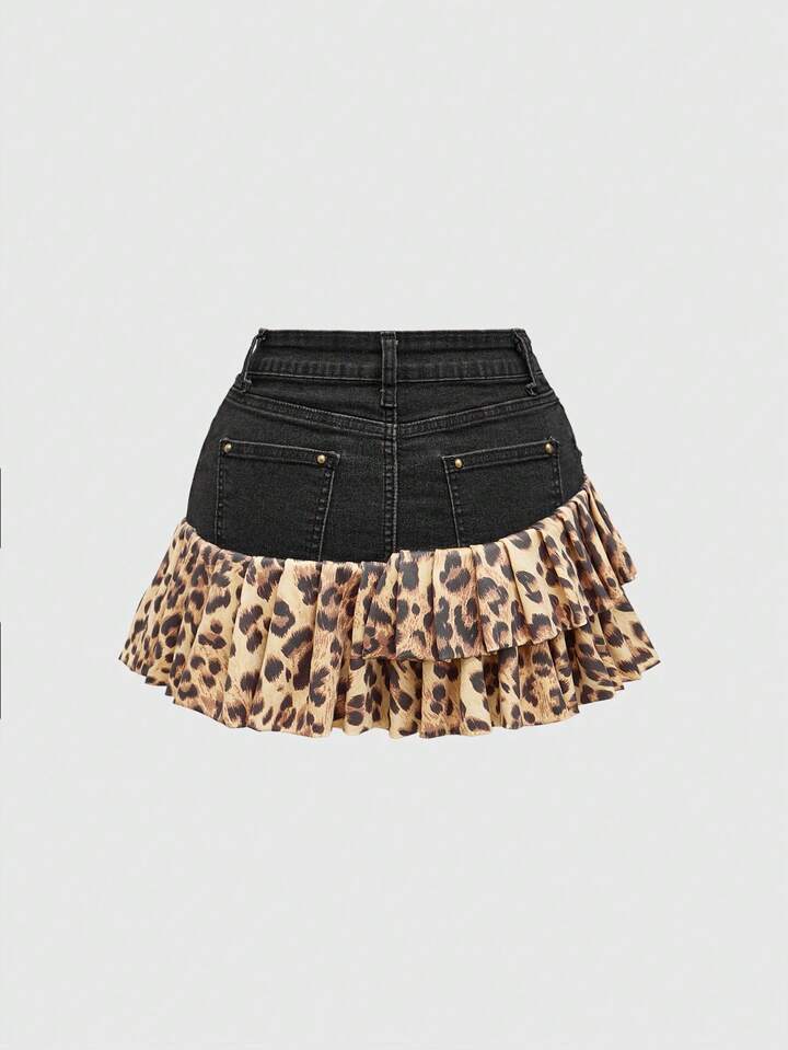 تنورة جينز قصيرة ديزي ميتاليك بطبعة بقري وخطوط متناسقة