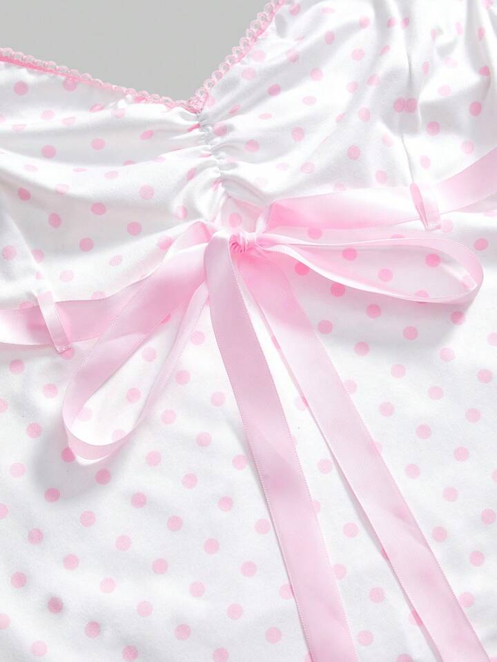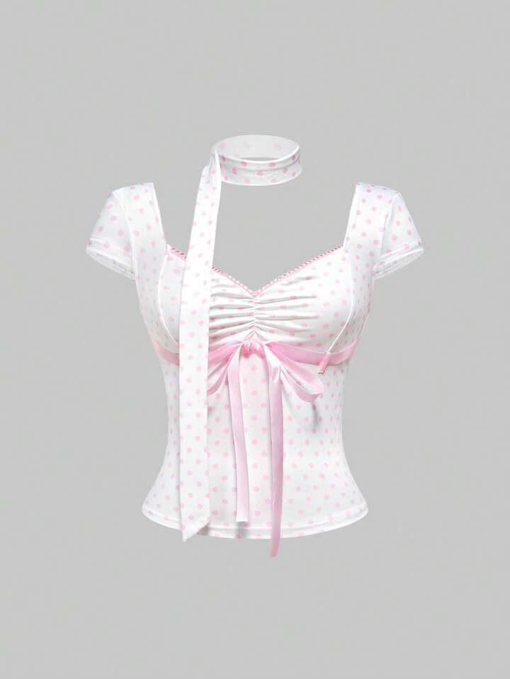 قميص نسائي بنقشة نقاط وفيونكة بطراز Y2K