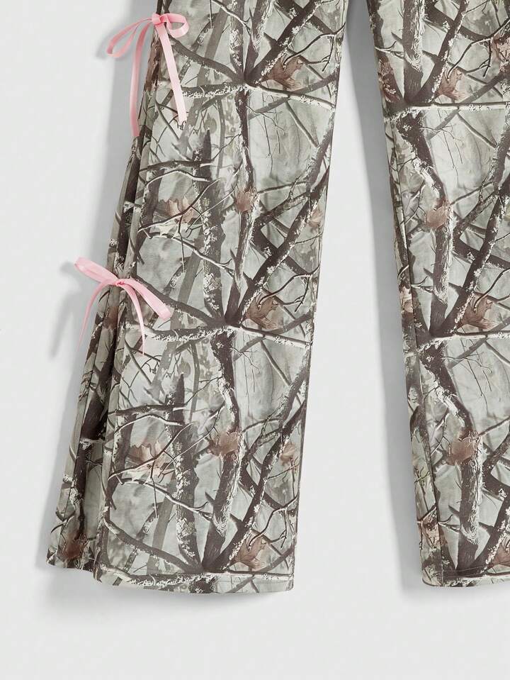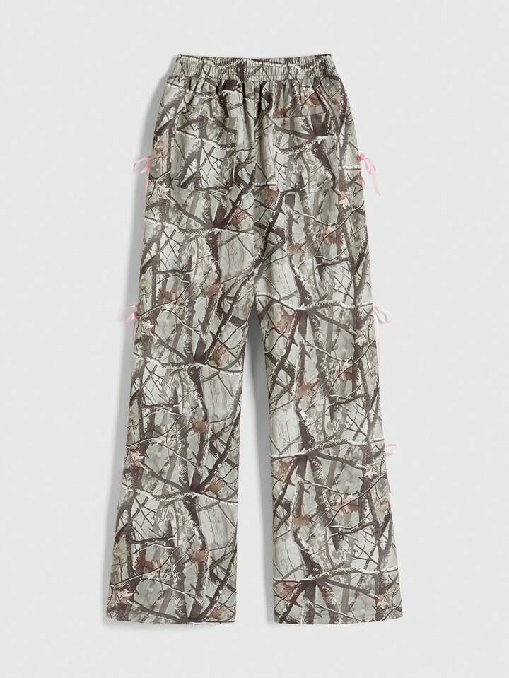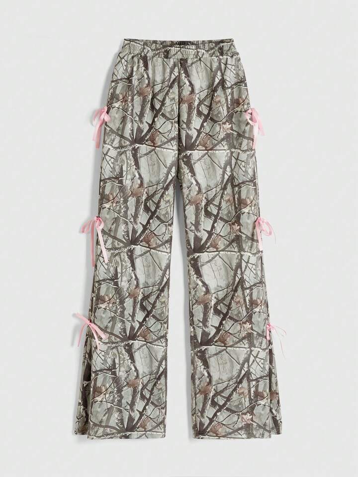 سروال رياضي فضفاض بطبعة أغصان كامولفلاج وربطة عقدة الخصر للنساء على طراز Y2K، ملابس صيفية