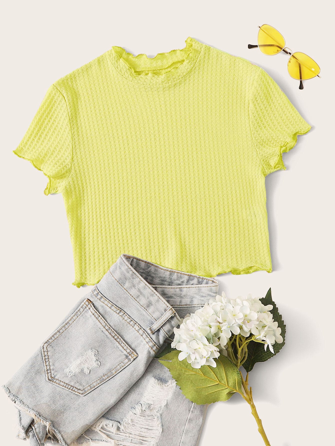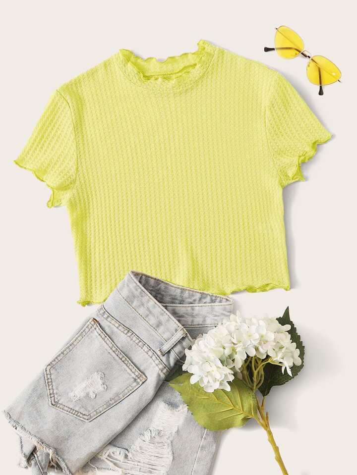 تي شيرت مقلم نمط الخس اصفر