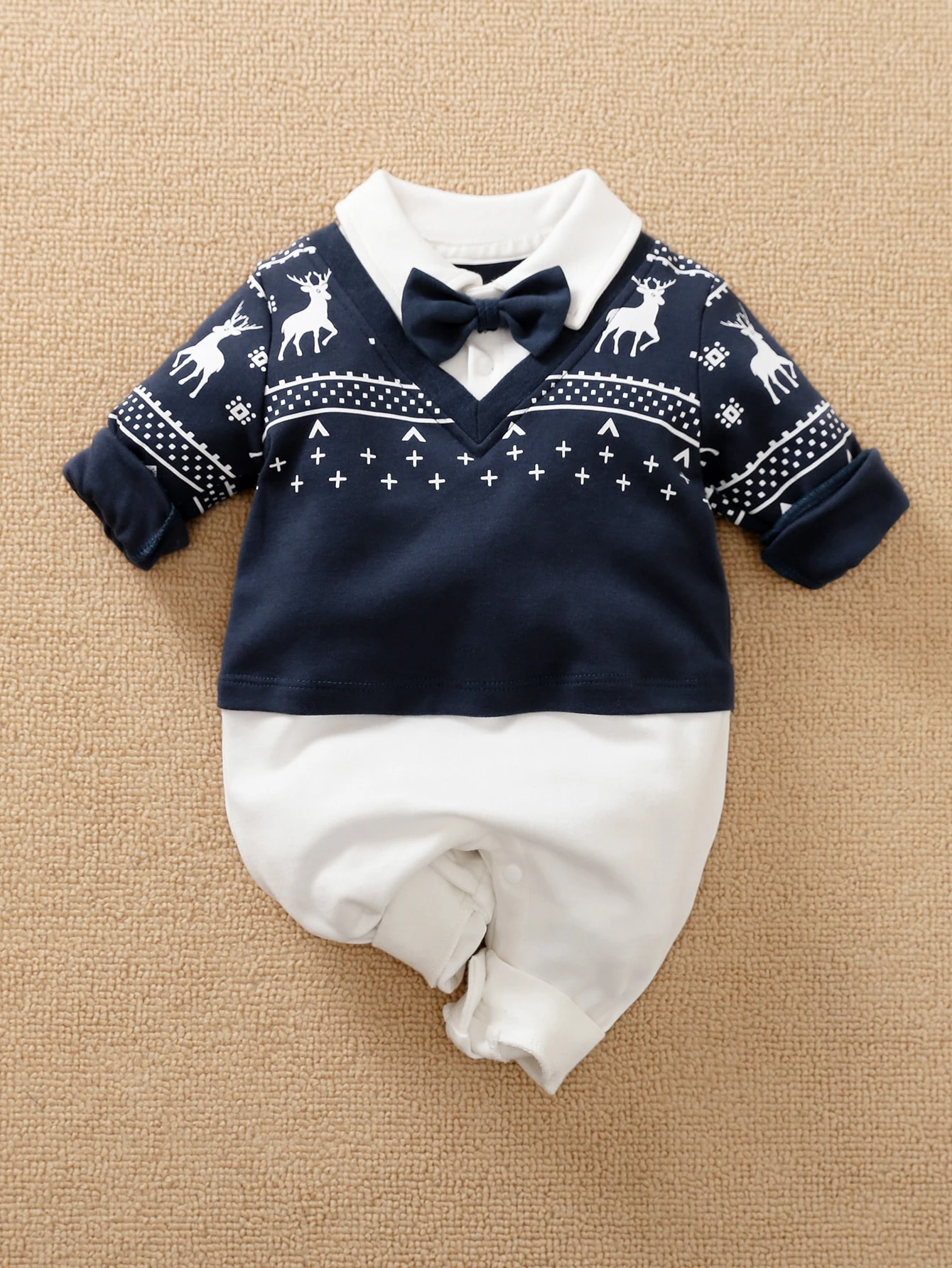 Yierying جمبسوت رضيع ذات طبعة غزال بياقة فيونكة للأولاد، للكريسماس