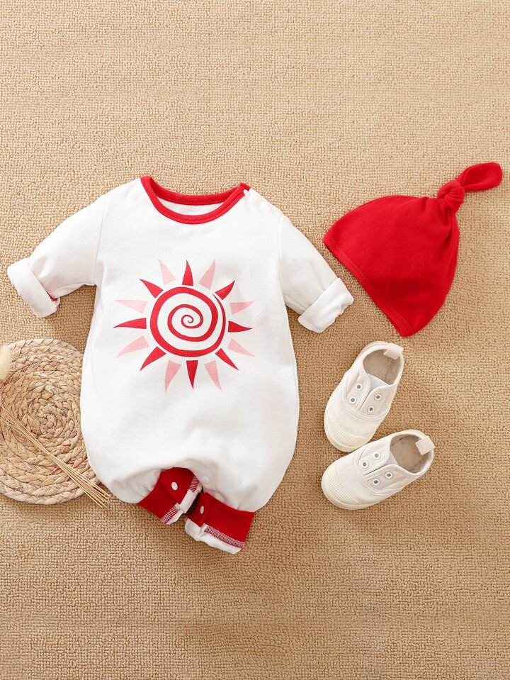 Yierying جمبسوت بطباعة الوان متجانس وجرافيك مع قبعة للاولاد الرضع