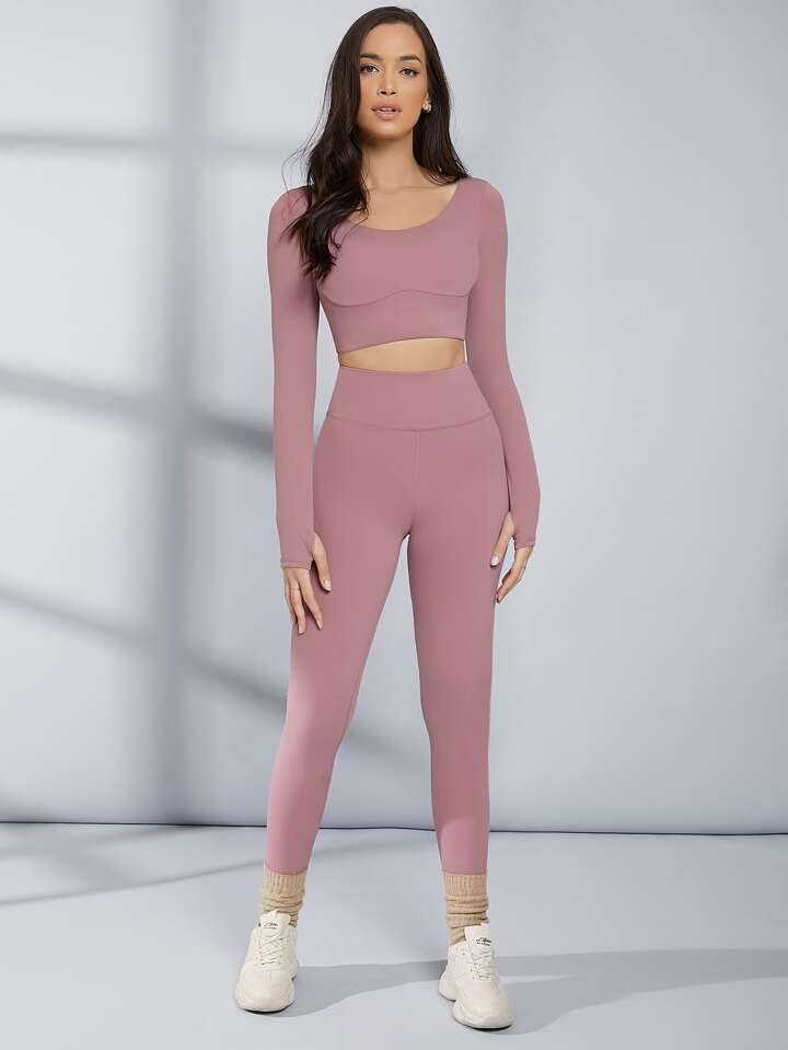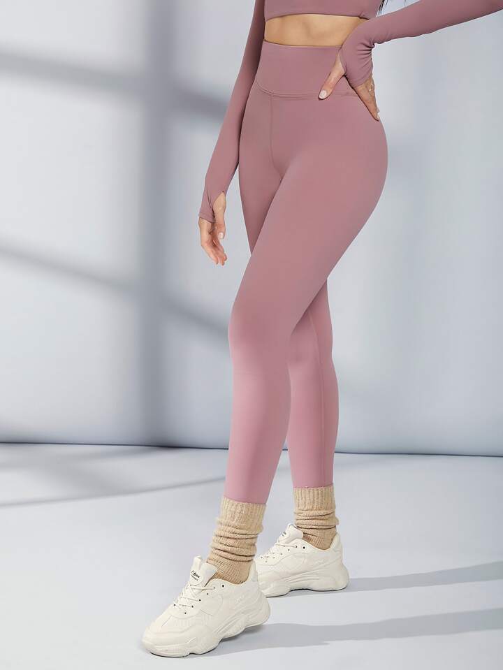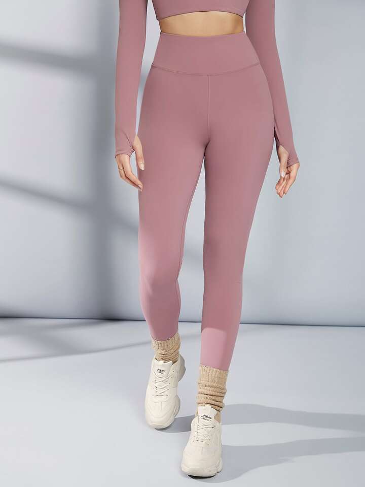 بنطلون يوجا ليجنز رياضي بدون خياطة بخصر عالٍ للتحكم في البطن مع حزام عريض