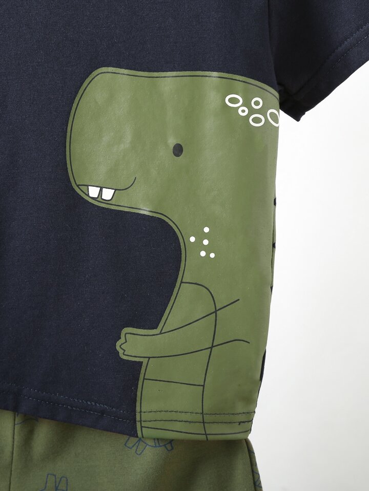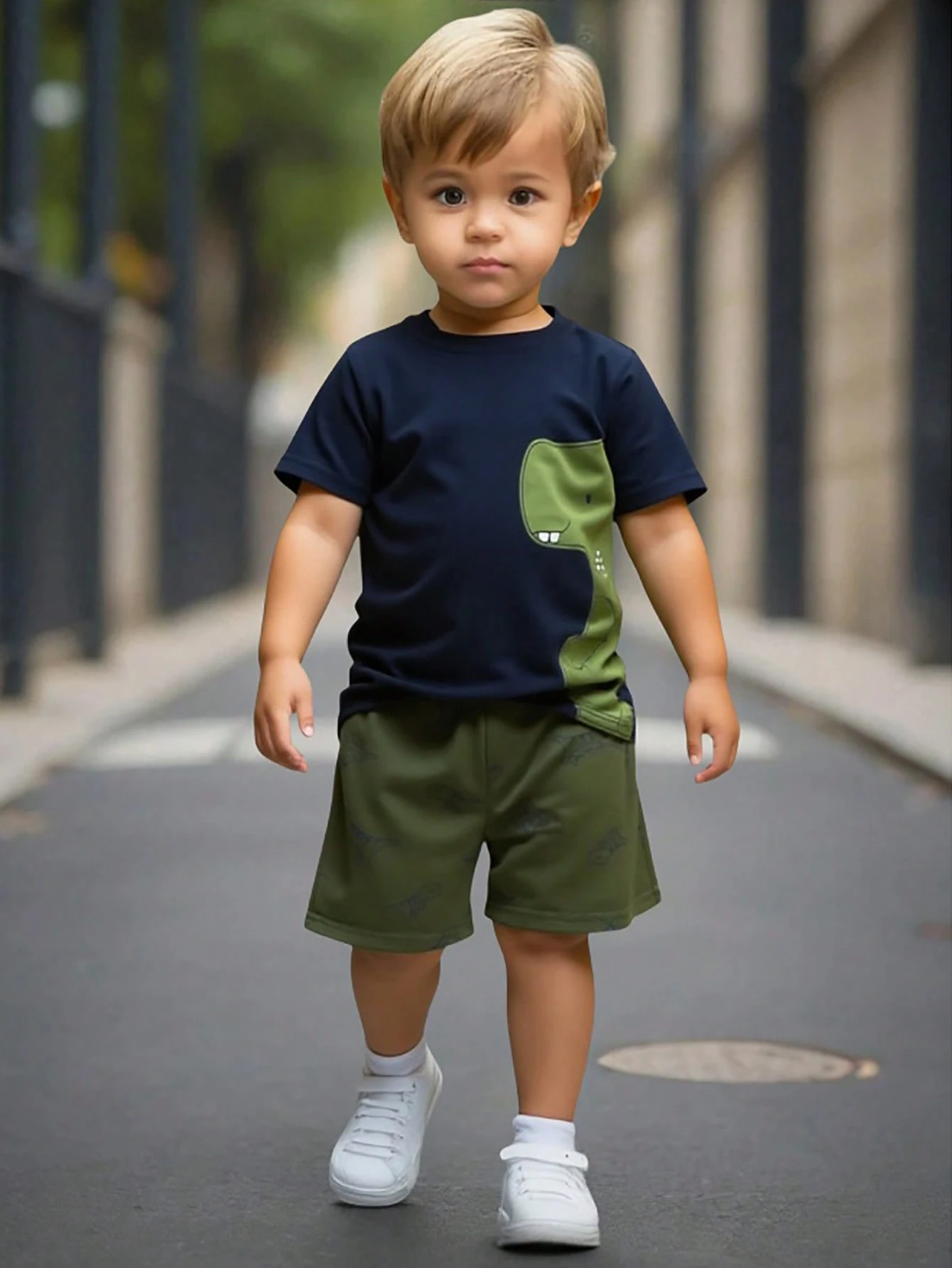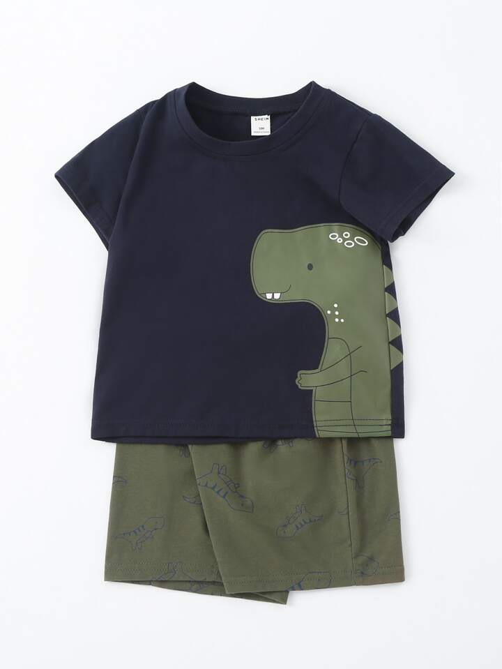 طقم قصير سروال وتيشيرت كرتوني ديناصور للأولاد الصغار، ملابس أطفال ديناصور، طقم ديناصور