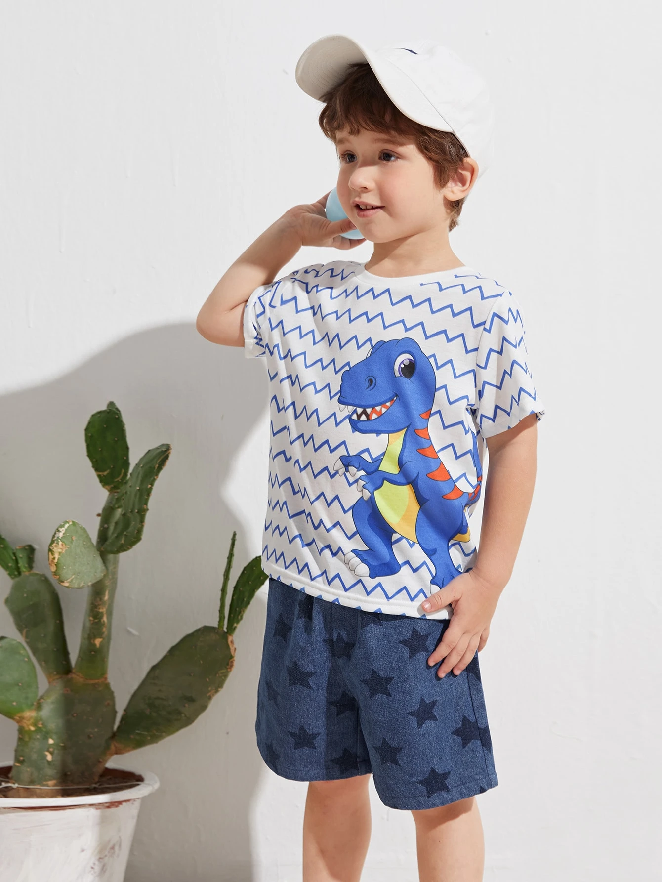 تي شيرت صغير للأولاد بطبعة ديناصور وموجة