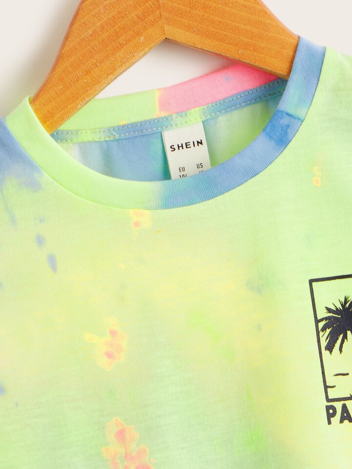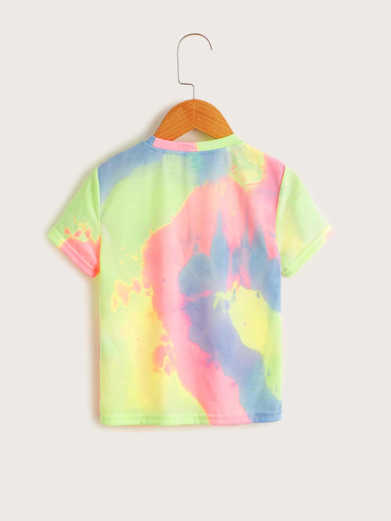 تي شيرت صبياني مزين بالحروف وتصميم ملون عنق صيده