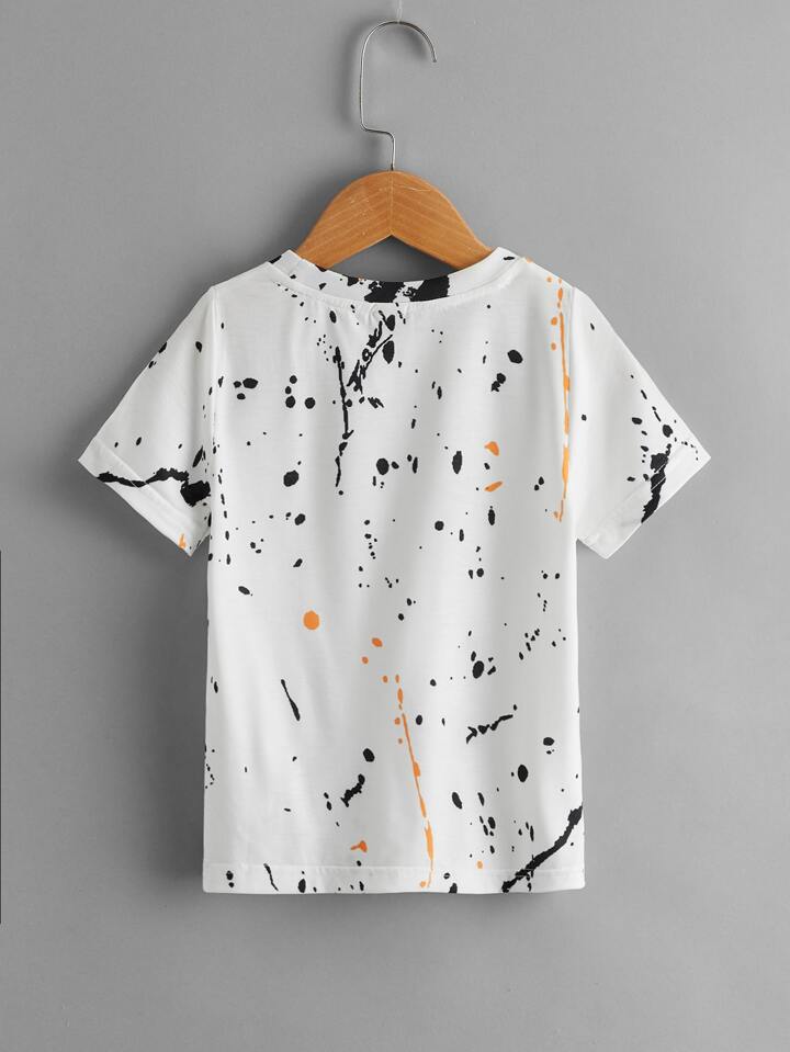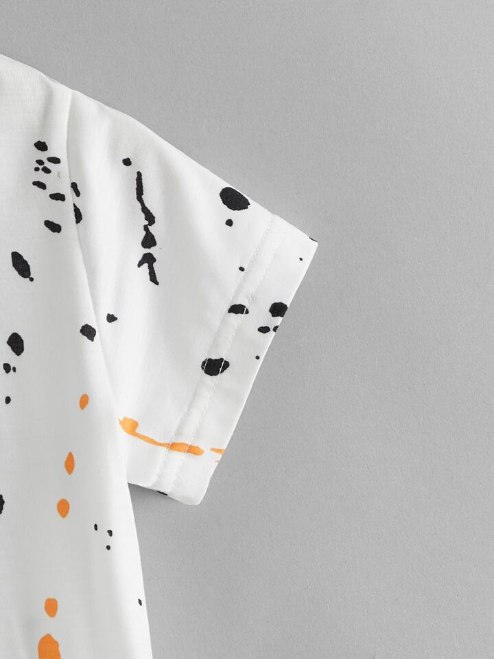 قميص يونغ بأكمام قصيرة مطبوع بالحبر المتناثر