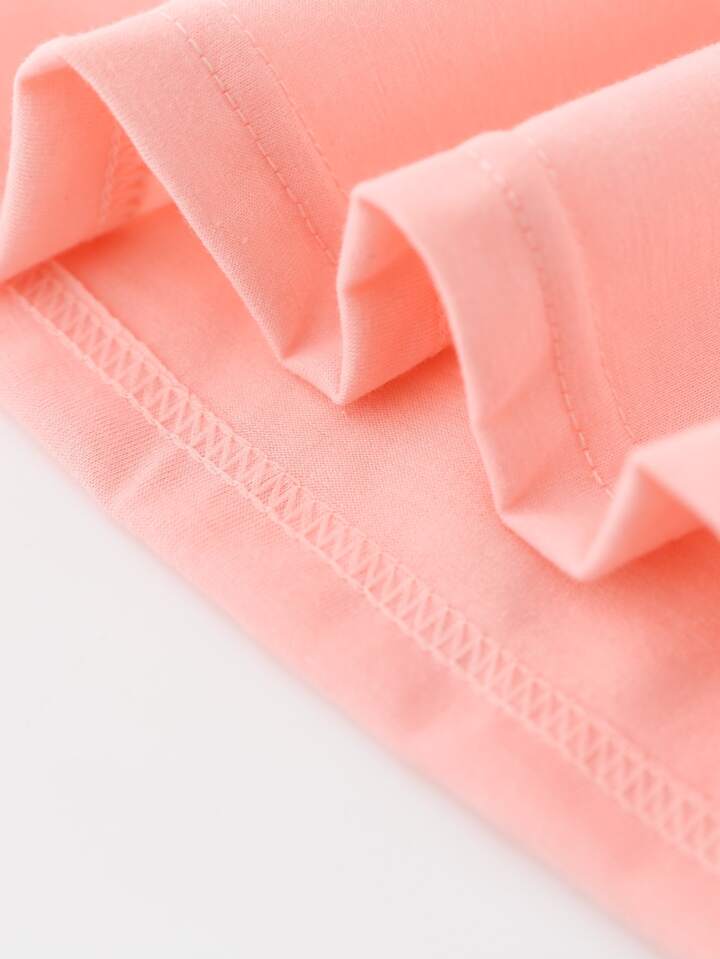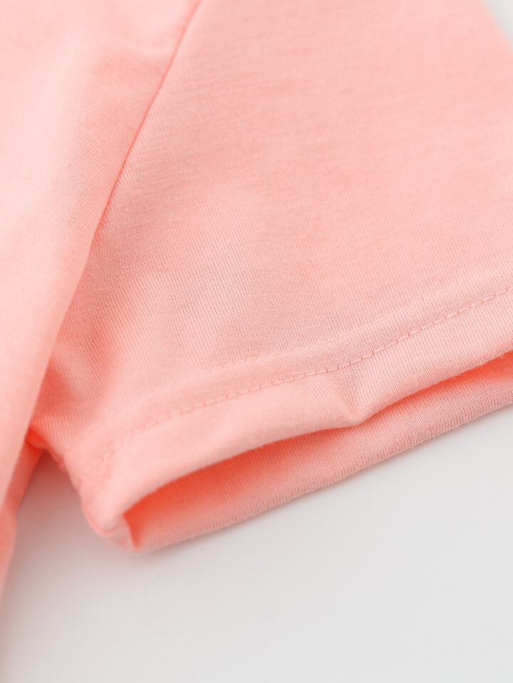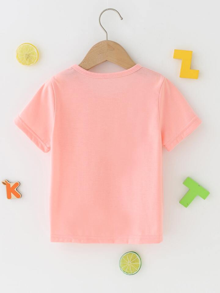 تي شيرت تي شيرت بأكمام قصيرة وياقة دائرية محبوكة ومطبوع عليها حروف عارضة للشابات