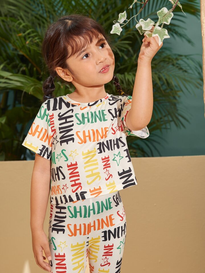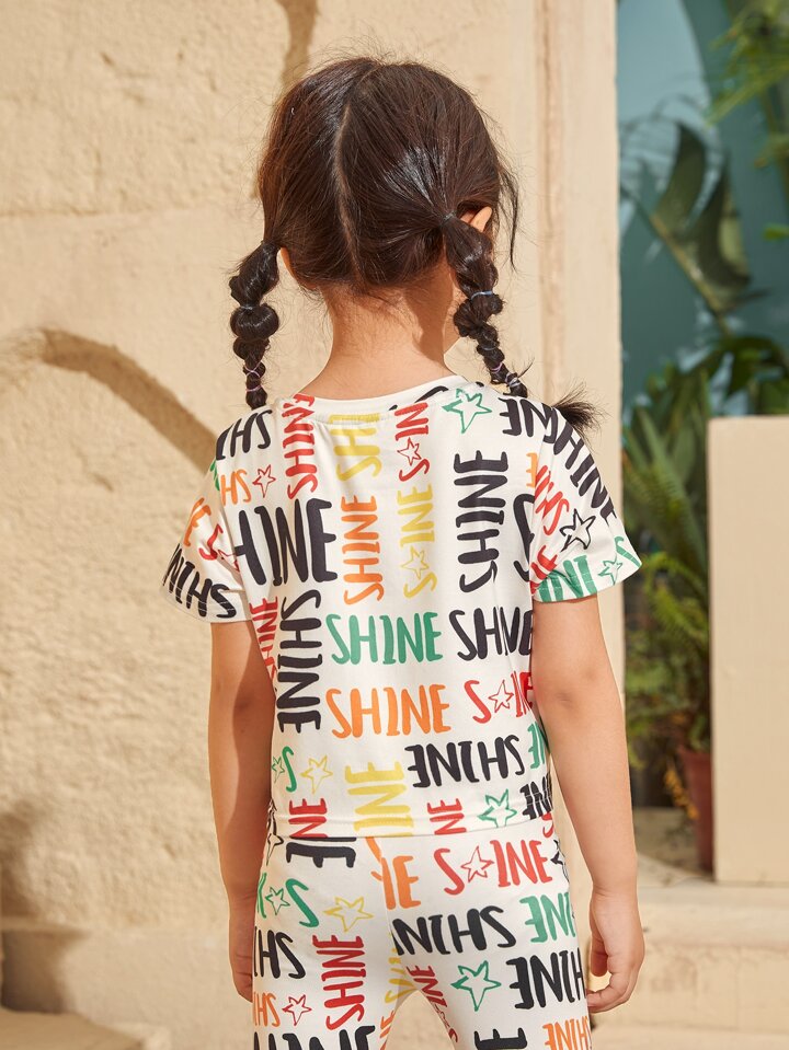 لباس علوي طباعة نجوم وحروف قطعة واحدة لفتاة صغيرة