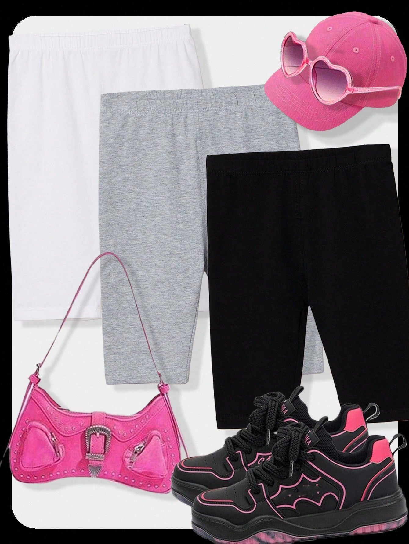 شورتات البايكر للفتاة الصغيرة ذات 3 قطع مع خصر مرن وثابت