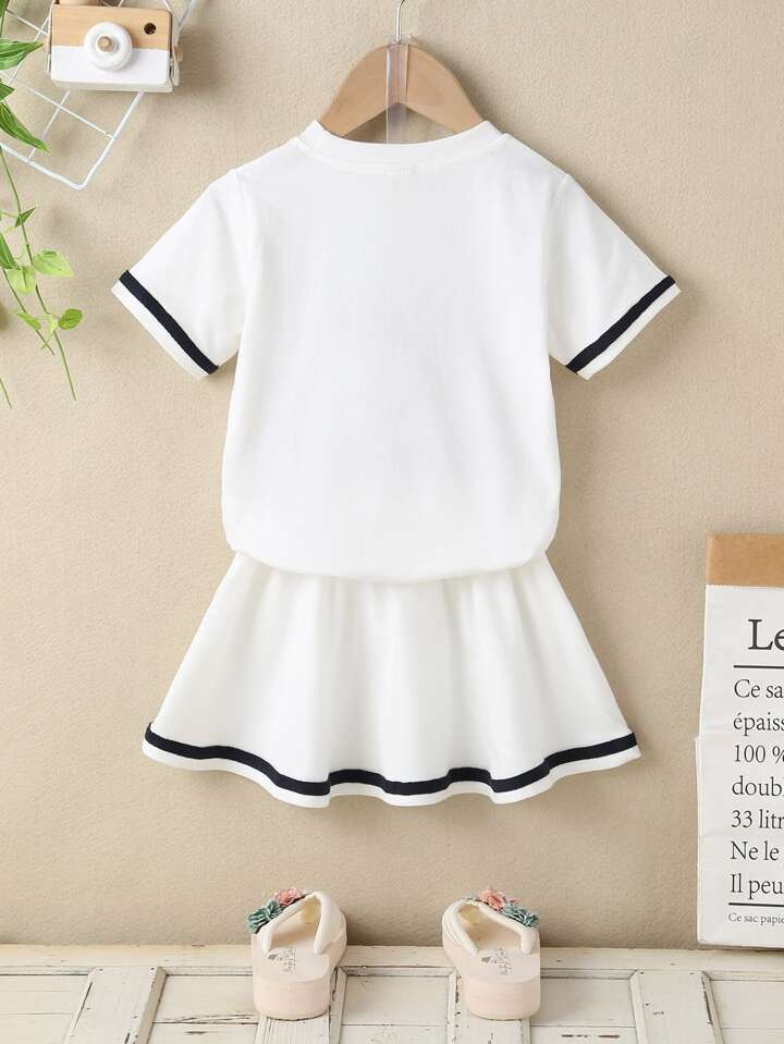 قميص قصير للفتاة برسوم كرتونية و حرف و تنورة