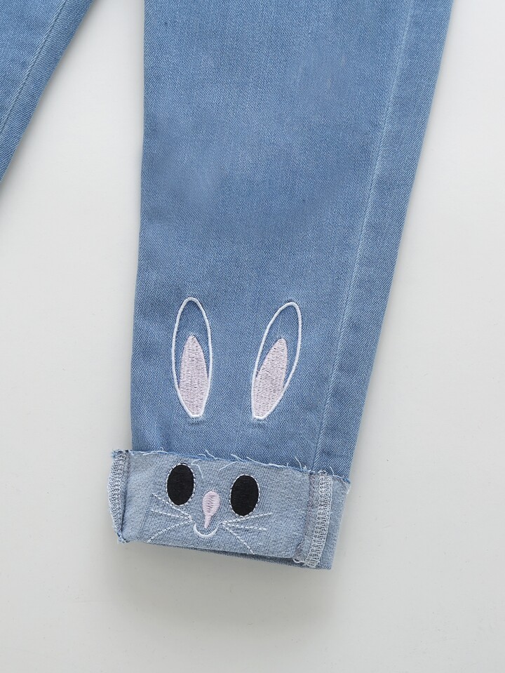 جينز مطرز برسوم كرتونية لفتاة صغيرة