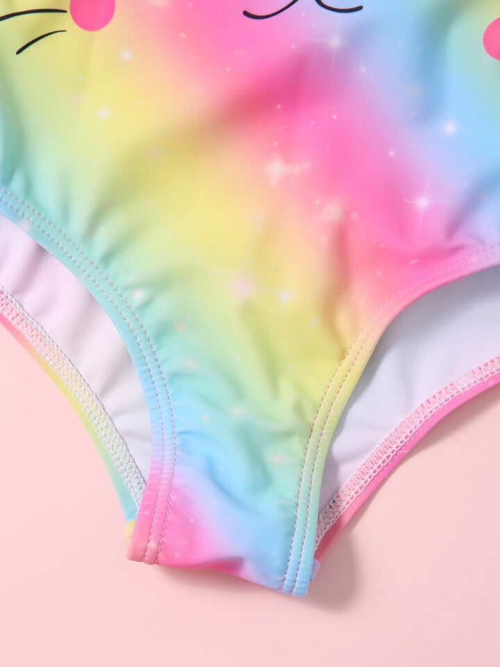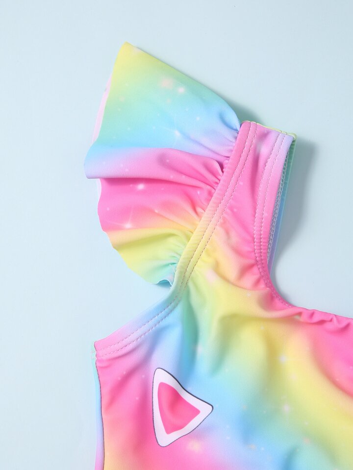 ملابس سباحة قطعة واحدة مكشكش برسوم كارتون للبنات الصغار