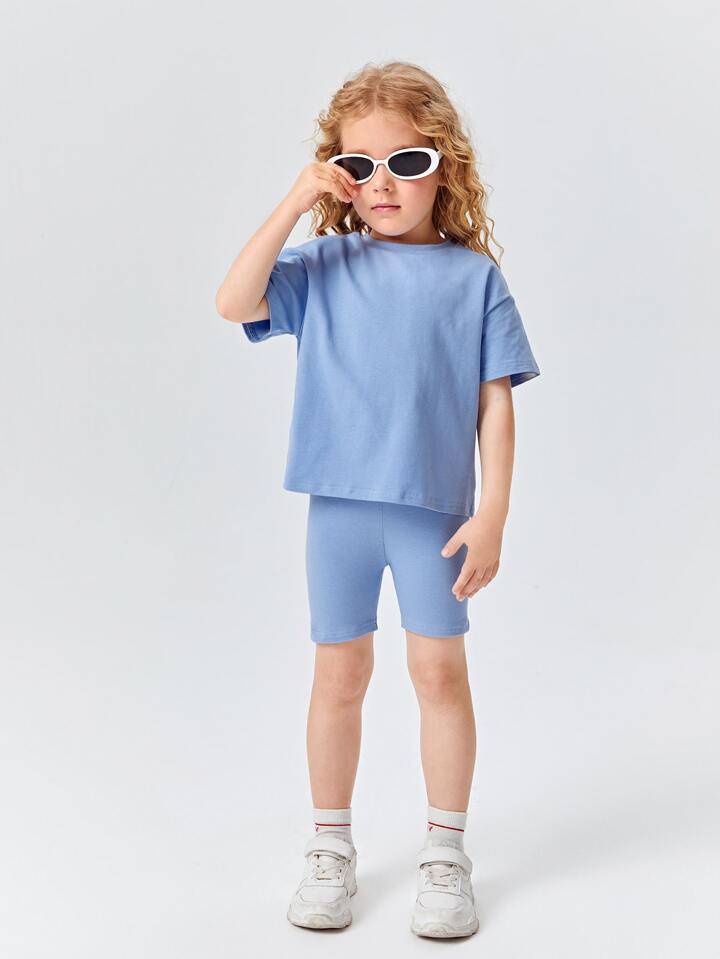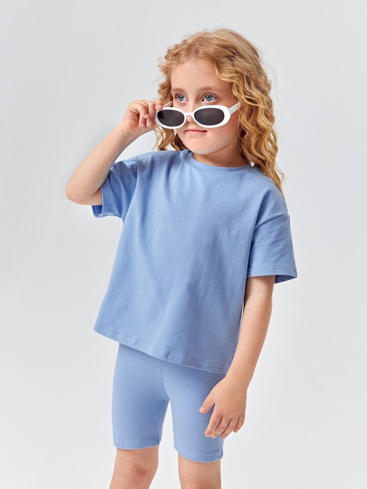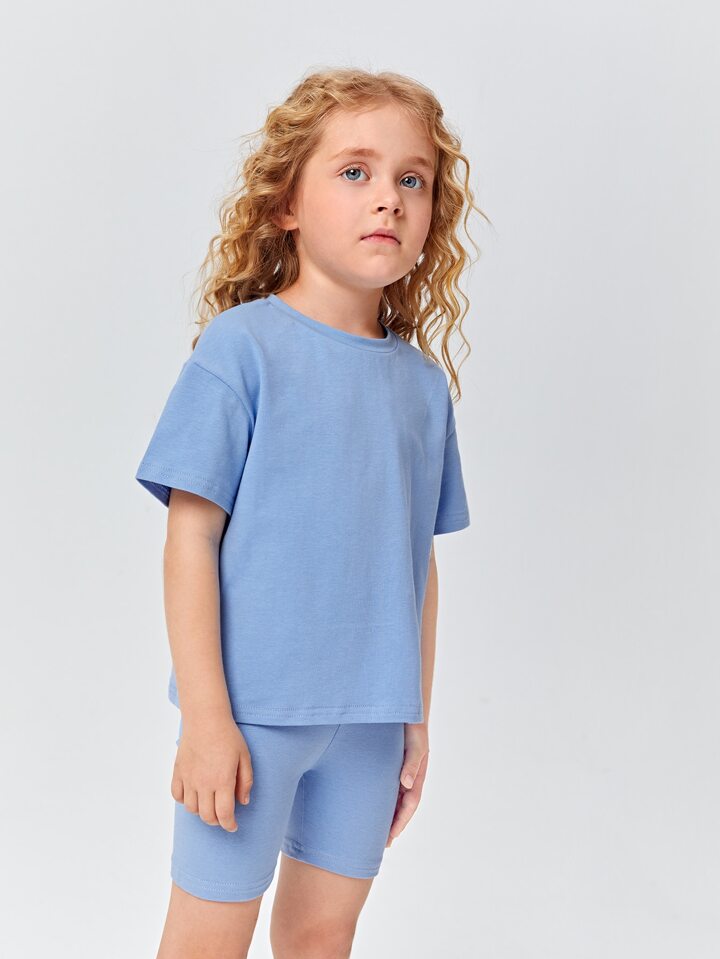 مجموعة قطعتين من قميص الفتاة الشابة القطني بأكتاف منسدلة و السراويل القصيرة الدراجة