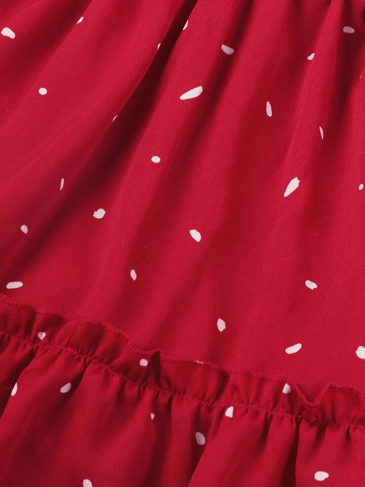 فستان بطبعة كلب دالماشين وطرف مجعد مع خصر مجمع للفتاة الصغيرة