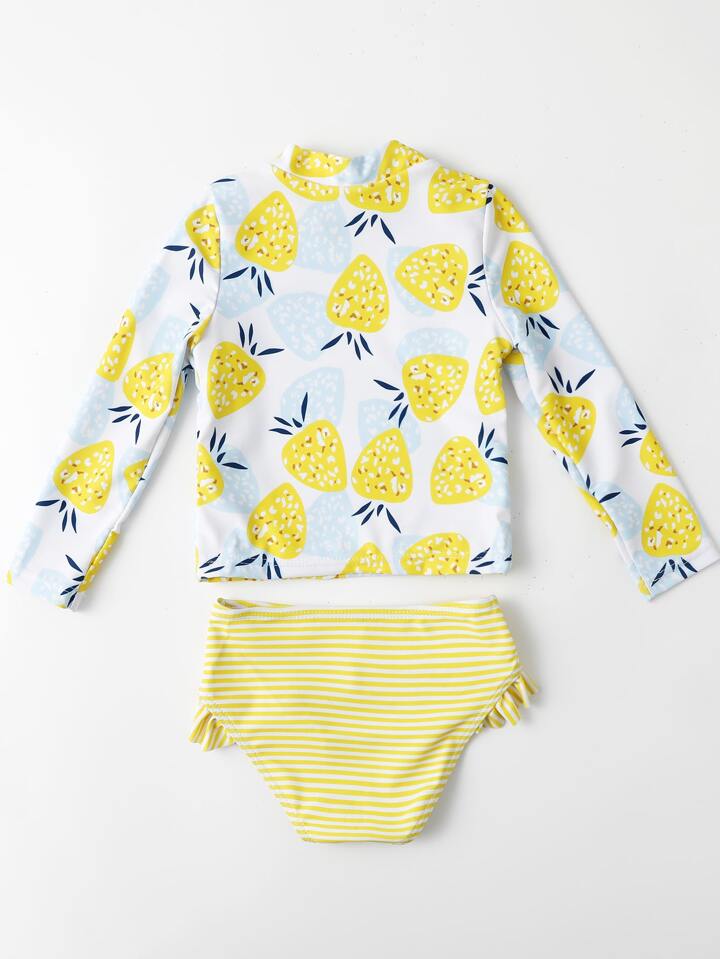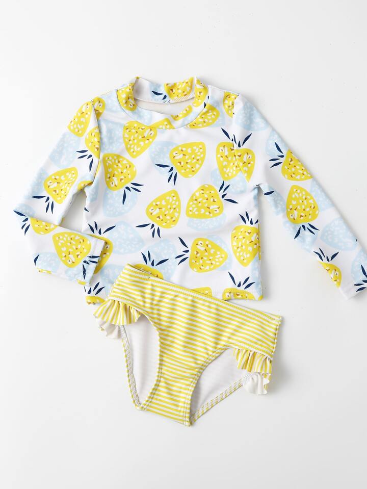 البلوزة الحارسة المكشكشة ذات الخطوط والفاكهة للفتاة الصغيرة للشاطئ الصيفي