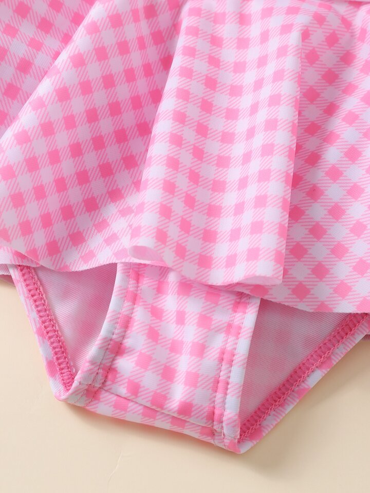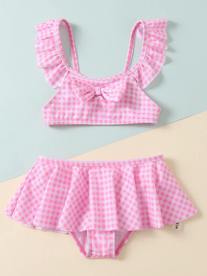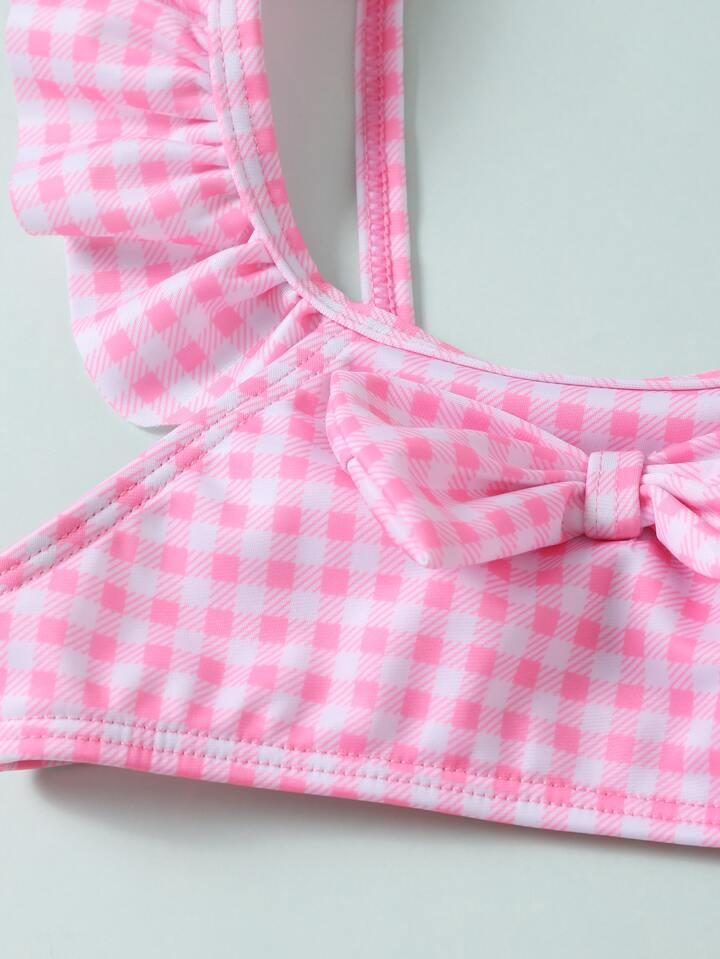 طقم بيكيني مع عقدة أمامية من الغينغام للفتاة الصغيرة، للشاطئ الصيفي