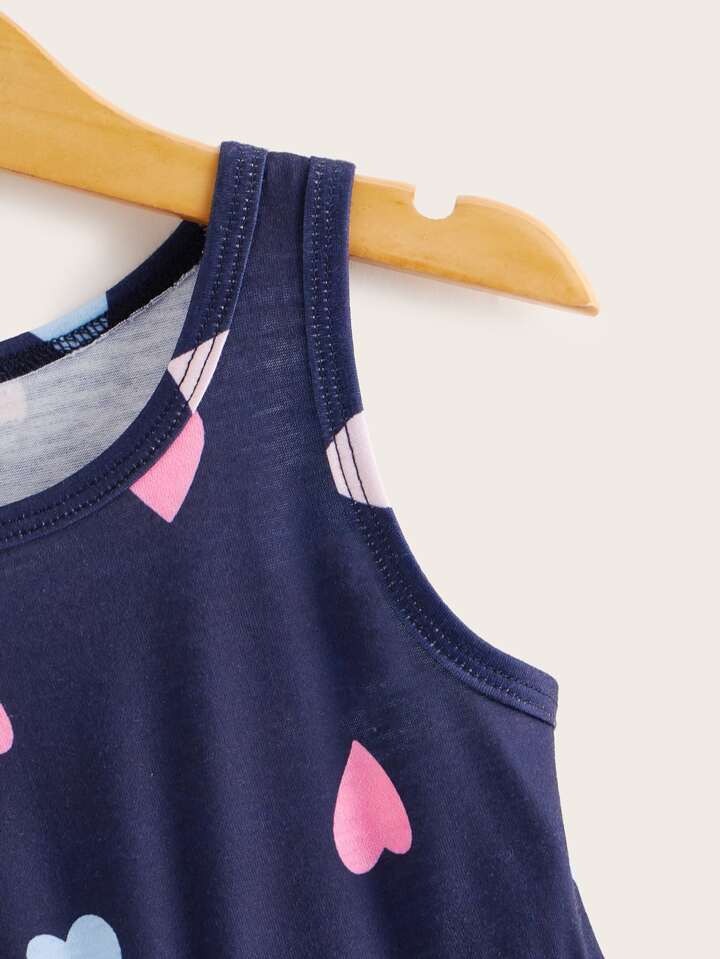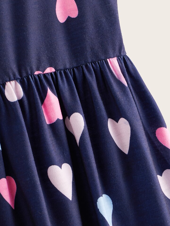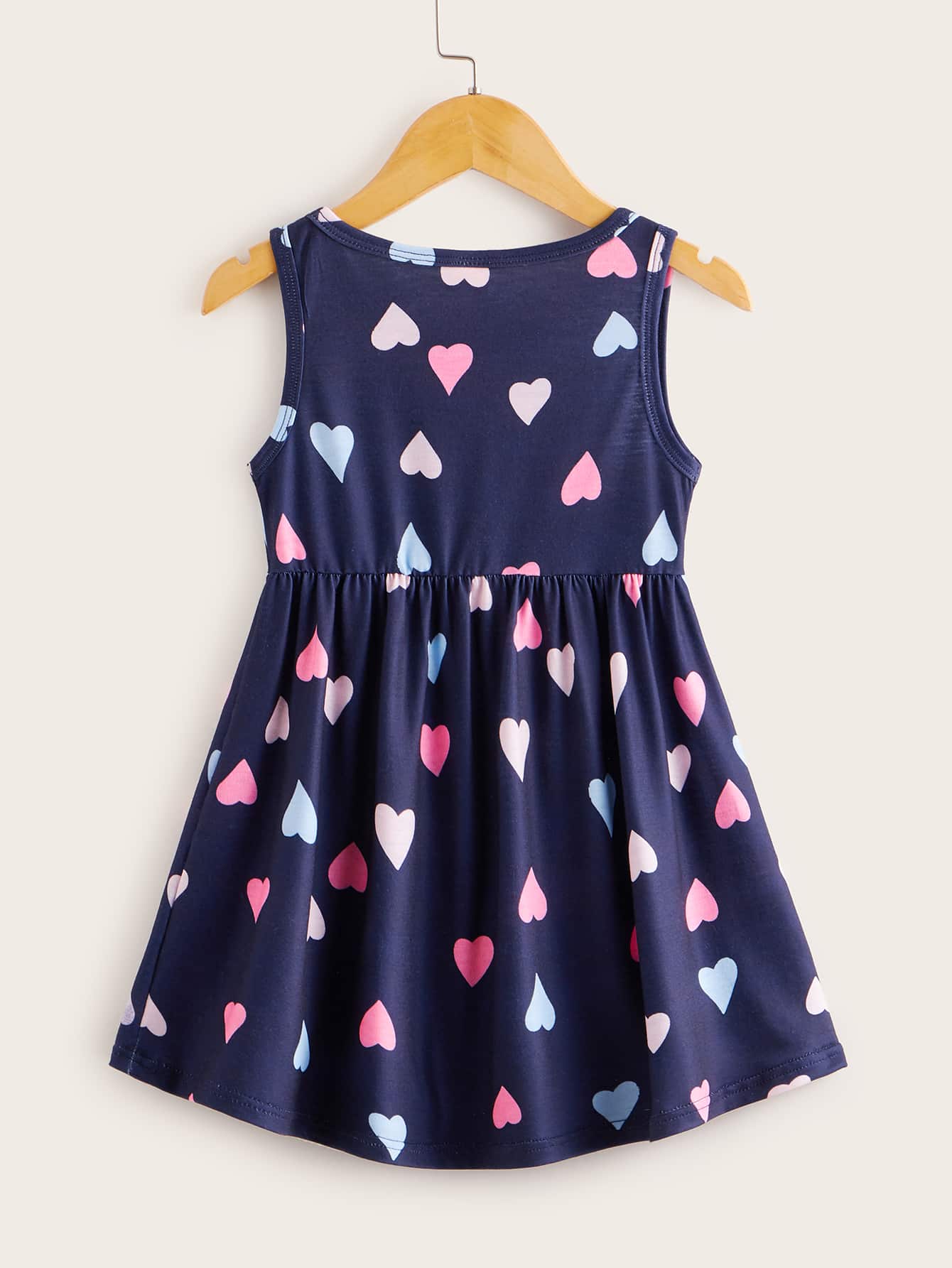 فستان بخط شكل A بدون اكمام بطباعة قلب للبنات الصغار