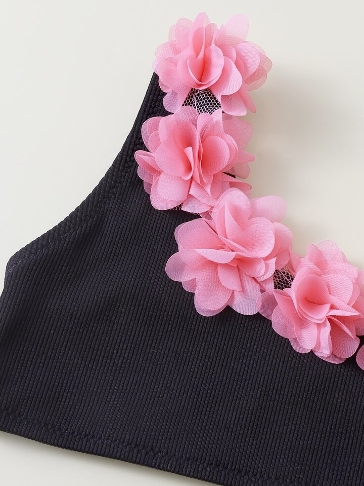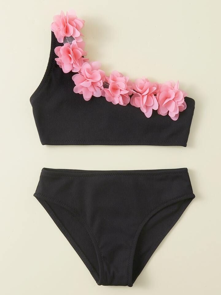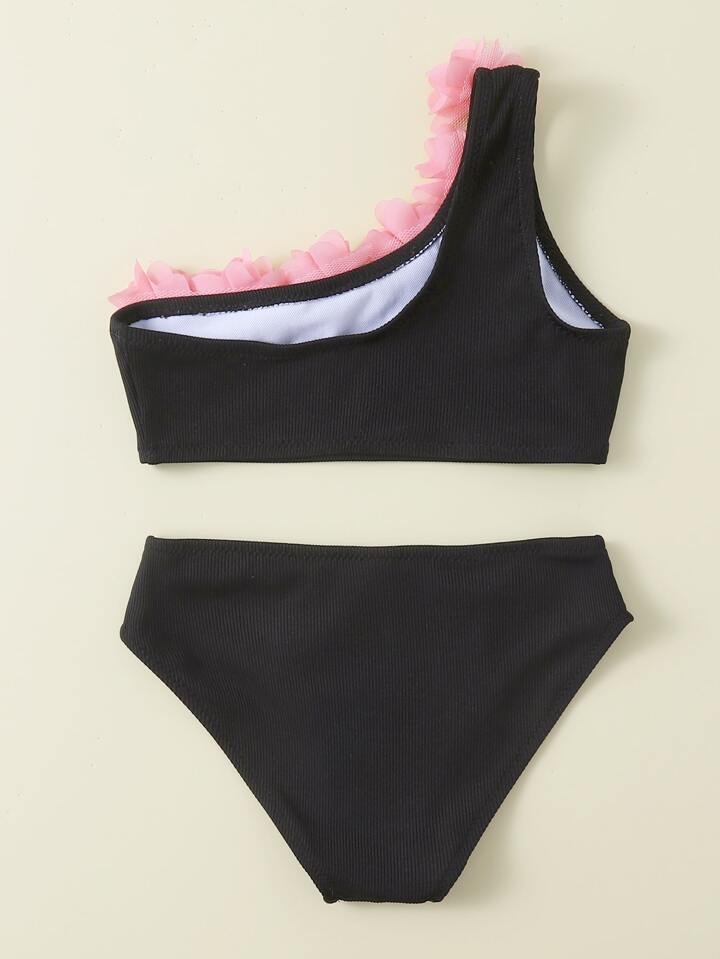 طقم بكيني شاطئي صيفي حاملة على كتف واحد تطريز جانب صغيرة