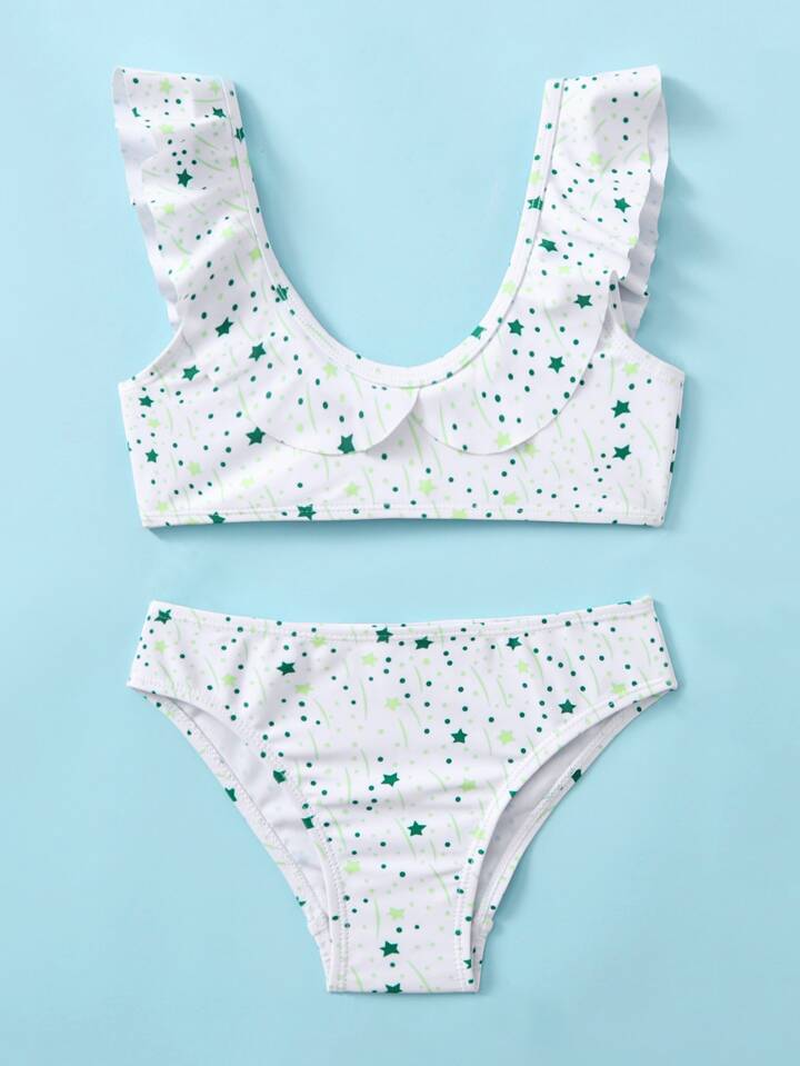 طقم بكيني بكشكشة بطباعة النجوم للفتاة الصغيرة , شاطئ الصيف
