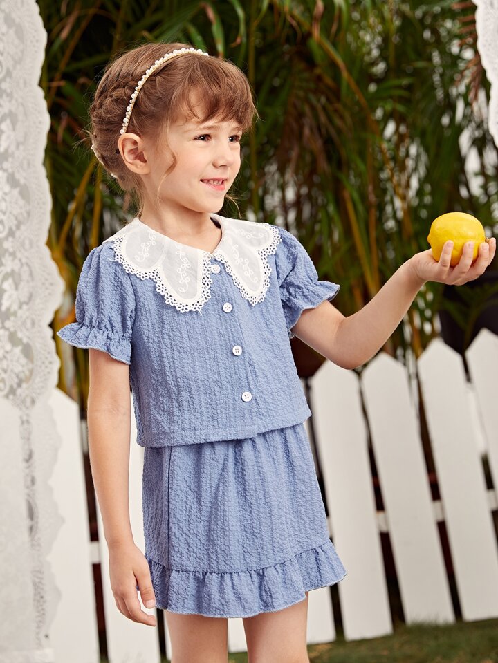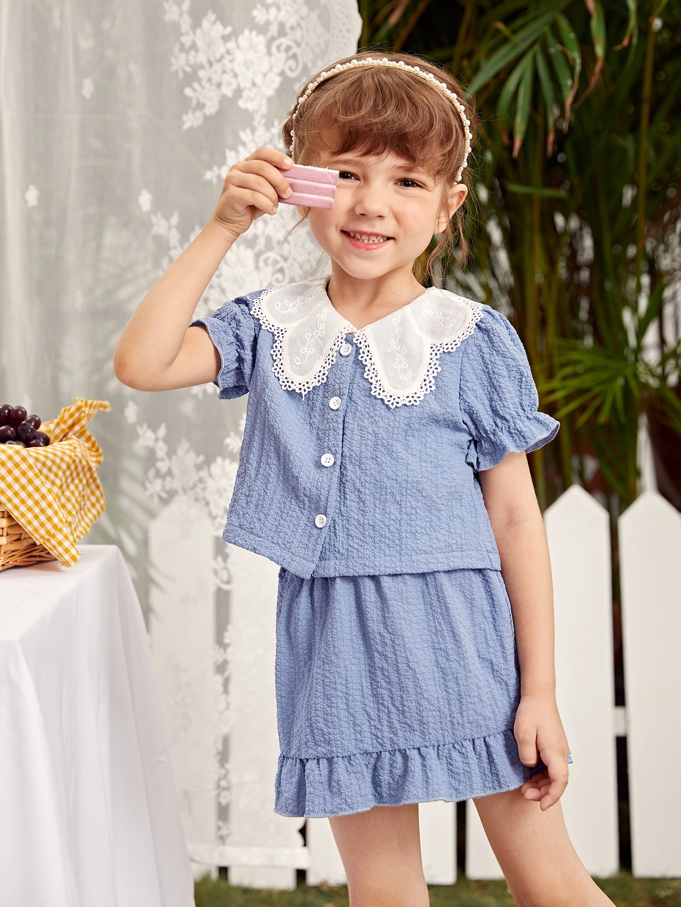 بلوزة وتنورة للفتيات الصغيرات ذات طوق بيتر بان متباين
