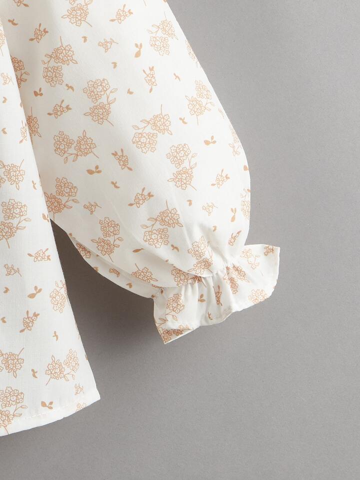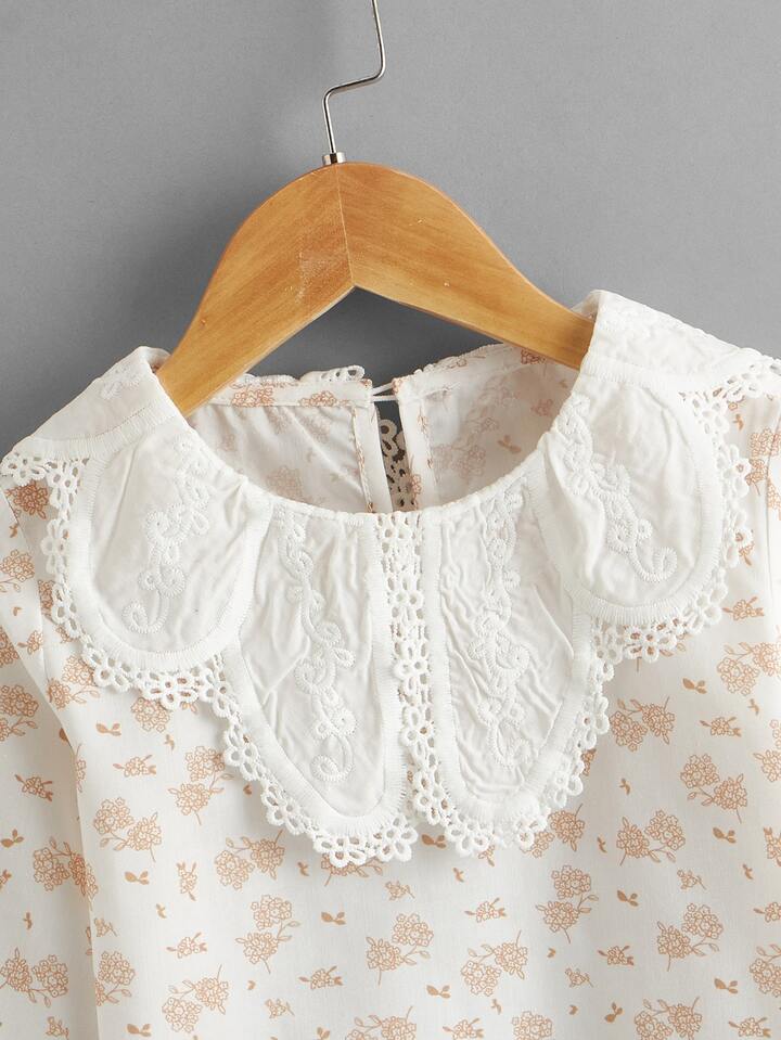 قميص بيتر بان ذو ياقة مكونتراست مع طبعة زهور مبهجة للفتيات الصغيرات